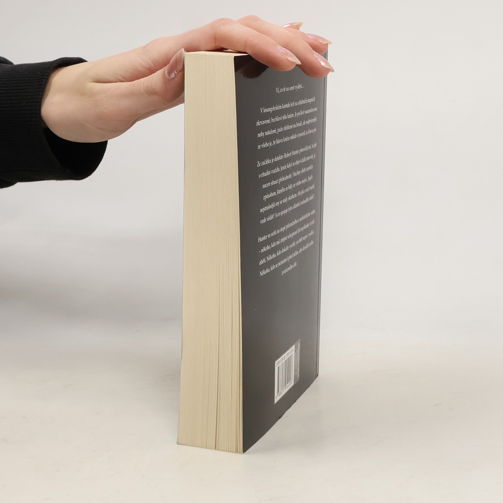 Ví, co tě na smrt vyděsí… V losangeleském kostele leží na oltářních stupních zkrvavené, bezhlavé tělo kněze. Je pečlivě naaranžované, nohy natažené, paže křížené na hrudi, ale nejhrůznější ze všeho je, že hlavu kněze někdo vyměnil za hlavu psí. Ze začátku je detektiv Robert Hunter přesvědčený, že jde o rituální vraždu. Jenže když se objeví další mrtvoly, je nucen situaci přehodnotit. Všechny oběti zemřely způsobem, kterého se bály ze všeho nejvíc. Jejich nejstrašnější sny se staly skutkem. Ale jak o nich mohl vrah vědět? A co spojuje tyto zdánlivě nahodilé oběti? Hunter se ocitá na stopě přízračného a sadistického vraha – někoho, kdo má zřejmě schopnost číst myšlenky svých obětí. Někoho, kdo dokáže vycítit, co oběť nejvíc vyděsí. Někoho, kdo se nezastaví před ničím, aby dosáhl svého zvráceného cíle.