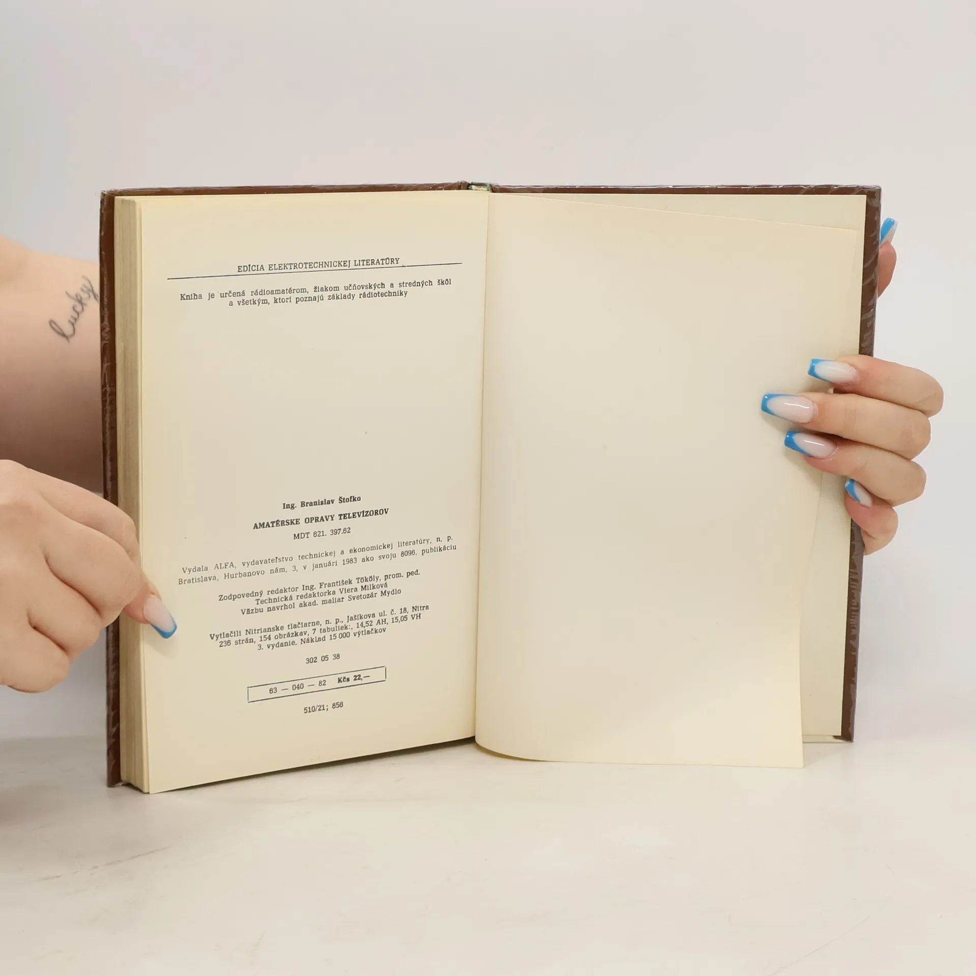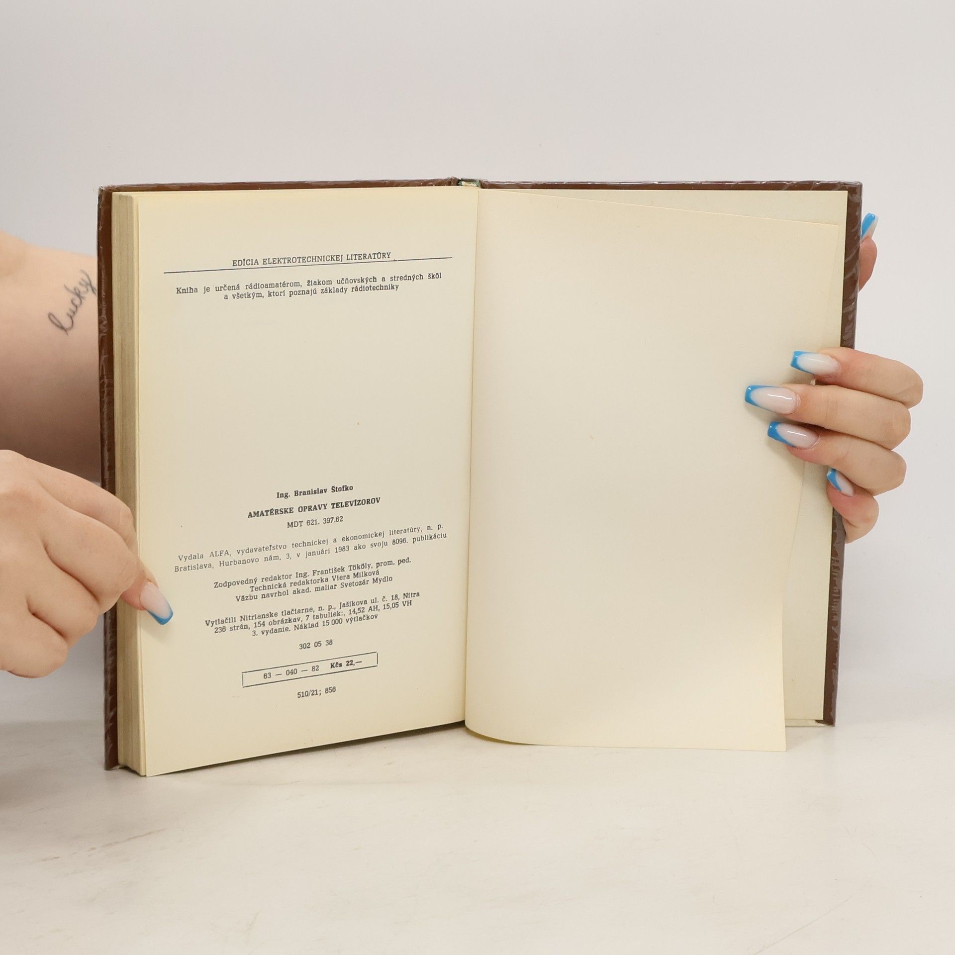 Ing. Branislav Štofko: Amatérske opravy televízorov. Kniha je určená rádioamatérom, žiakom učňovských škôl a všetkým, ktorí poznajů základy rádiotechniky. Vydala ALFA, vydavateľstvo technickej a ekonomickej literatúry, n. p. Bratislava, v novembri 1979, 2. vydanie. Edícia elektrotechnickej literatúry. 154 obrázkov, 7 tabuliek. Kapitoly: Opravy TV prijímačov, Pomôcky na opravy TV prijímačov, Prípravné práce pred opravou, Elektrónky v televíznych prijímačoch, Tranzistory v TV prijímačoch, Typické poruchy televíznych prijímačov, Amatérske meracie prístroje, Skúšobný obrazec, Úpravy TV prijímačov, Chyby mimo TV prijímača. Druhé vydanie. Cena knihy v čase vydania: 22.- Kčs. 63-048-79