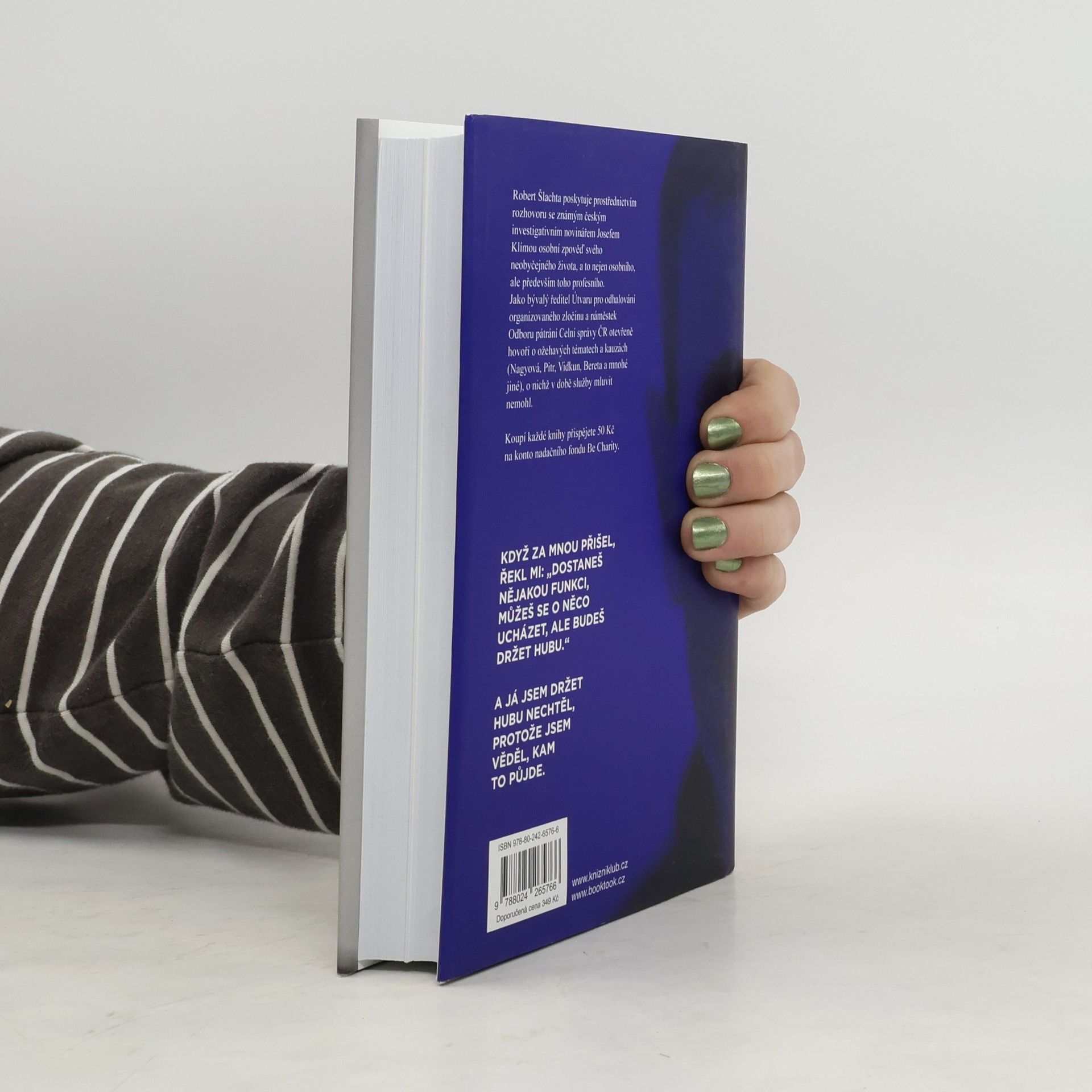 Robert Šlachta poskytuje prostřednictvím rozhovoru se známým českým investigativním novinářem Josefem Klímou osobní zpověď svého neobyčejného života, a to nejen osobního, ale především toho profesního. Jako bývalý ředitel Útvaru pro odhalování organizovaného zločinu a náměstek Odboru pátrání Celní správy ČR otevřeně hovoří o ožehavých tématech a kauzách (Nagyová, Pitr, Vidkun, Bereta a mnohé jiné), o nichž v době služby mluvit nemohl. Koupí každé knihy přispějete 50 Kč na konto nadačního fondu Be Charity.