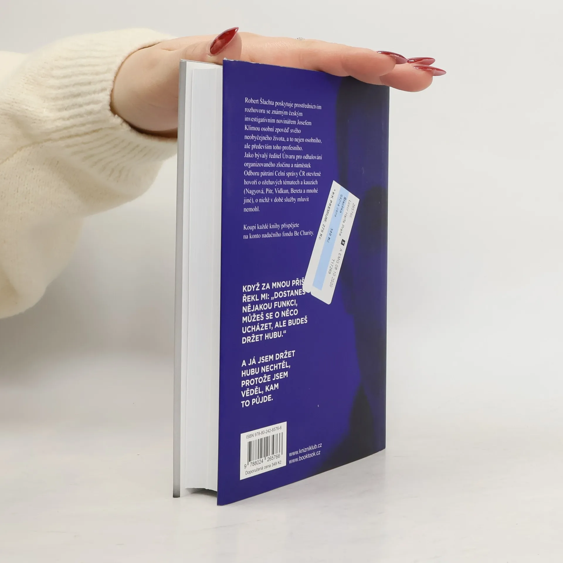 Robert Šlachta poskytuje prostřednictvím rozhovoru se známým českým investigativním novinářem Josefem Klímou osobní zpověď svého neobyčejného života, a to nejen osobního, ale především toho profesního. Jako bývalý ředitel Útvaru pro odhalování organizovaného zločinu a náměstek Odboru pátrání Celní správy ČR otevřeně hovoří o ožehavých tématech a kauzách (Nagyová, Pitr, Vidkun, Bereta a mnohé jiné), o nichž v době služby mluvit nemohl. Koupí každé knihy přispějete 50 Kč na konto nadačního fondu Be Charity.