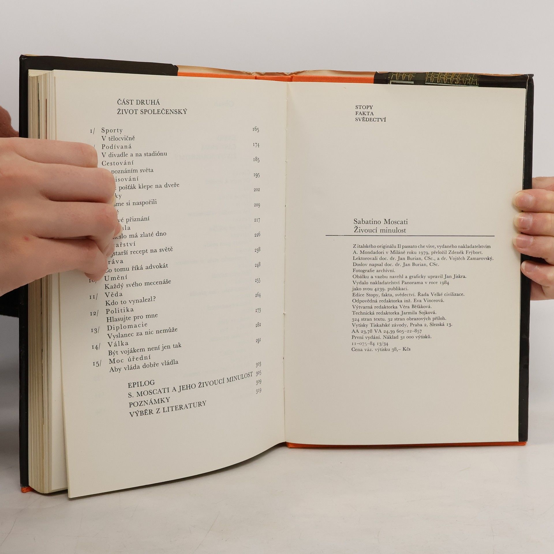 Moscati si v této práci všímá význačných a charakteristických složek soukromého i veřejného živíota starověkých národů, a to jak ve východních státech, tak v klasických antických zemích, a ukazuje, čím a jak tyto národy přispěly k vývoji světové civilizace, Bohatým využitím dobových pramenů literárních i dokumentárních, prozaických i básnických, úředních i soukromých dosahuje plastičnosti obrazu a zprostředkovává čtenáři konkrétní náhled do růzých sfér života starověkého lidstva.