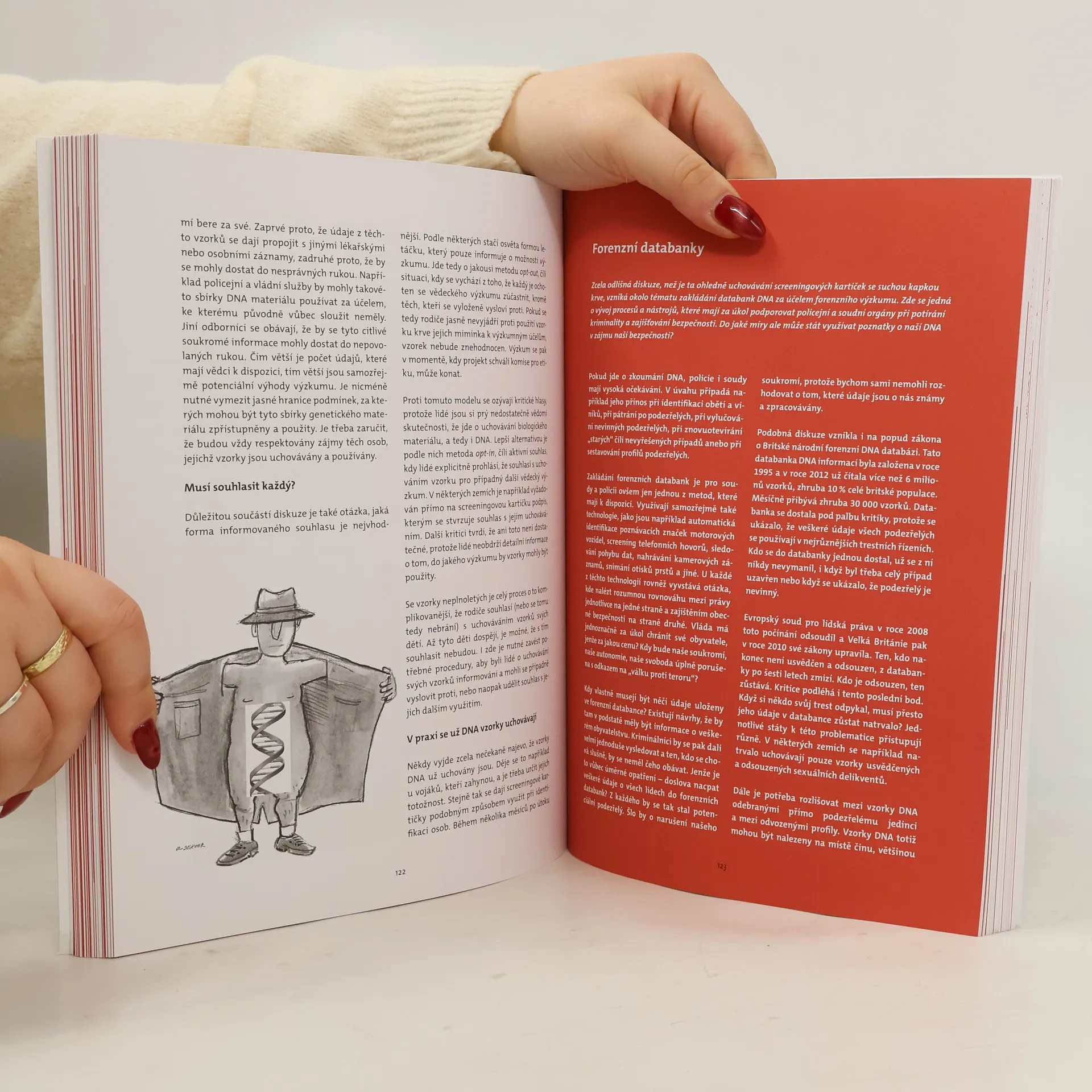 Populárně-vědecká kniha obsahuje celou škálu témat týkajících se současné lidské genetiky. Snaží se zprostředkovat jasný vhled do problematiky a především také načrtnout její pozadí z hlediska vědeckého, medicínského i společenského. Příběhy jsou to vskutku rozmanité: setkáme se třeba s Angelinou Jolie, s genomem neandertálce, DNA prezidenta Obamy, jež byla dokonce nabízena k prodeji na serveru eBay, s testem DNA, který prý dokáže odhalit talent pro určitý sport, nebo s novým testem, jenž si klade za cíl od základů změnit dosavadní screening u těhotných žen, a mnoha dalšími... Nejenže se genetika díky těmto faktům a příběhům dostává blíže ke každému z nás, ona je navíc v každém z nás přítomna. Všichni máme geny a chromozomy, ale příliš málo se vyznáme v tom, co přesně pro nás vlastně znamenají. Co nám může ukázat náš genom? A co nám naopak prozradit nedokáže? Co by měl každý vědět o své DNA? Kdo má přístup ke genetickým informacím? Jak bude dál genetika (a genomika) ovlivňovat fungování našeho zdravotnictví?