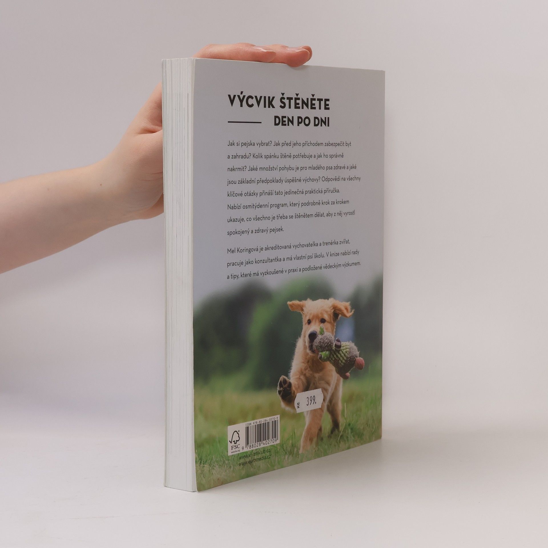 Jak si pejska vybrat? Jak před jeho příchodem zabezpečit byt a zahradu? Kolik spánku štěně potřebuje a jak ho správně nakrmit? Jaké množství pohybu je pro mladého psa zdravé a jaké jsou základní předpoklady úspěšné výchovy? Odpovědi na všechny klíčové otázky přináší tato jedinečná praktická příručka. Nabízí osmitýdenní program, který podrobně krok za krokem ukazuje, co všechno je třeba se štěnětem dělat, aby se z něj stal spokojený a zdravý pejsek. Mel Koringová je akreditovaná vychovatelka a trenérka zvířat, pracuje jako konzultantka a má vlastní psí školu. Ve své knize nabízí rady a tipy, které má vyzkoušené v praxi a podložené vědeckým výzkumem.