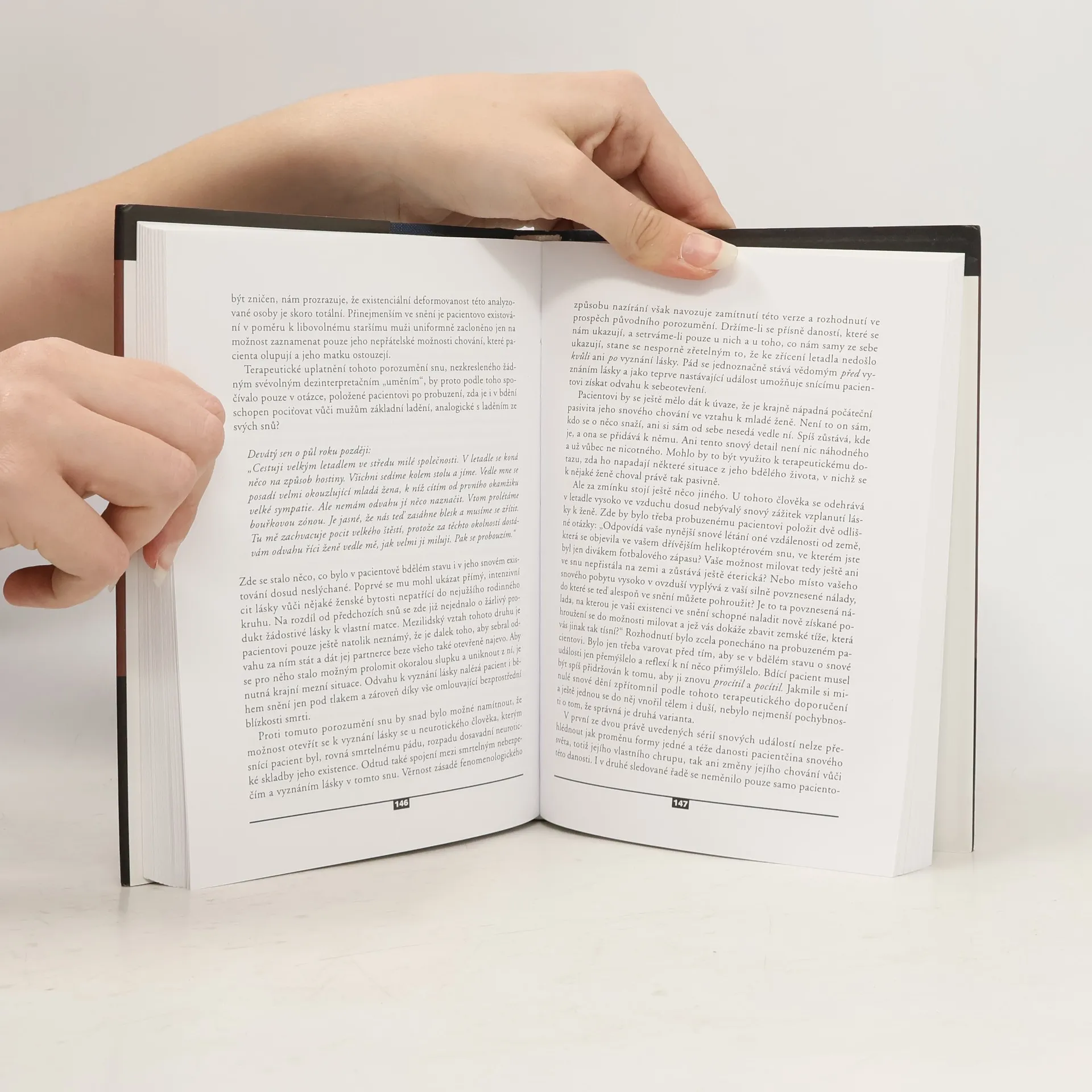 Polemická studie autora, který proti sobě staví na jedné straně Freudovu psychoanalýzu a Jungovu teorii archetypů, a na druhé straně svou vlastní fenomenologickou koncepci výkladu lidského snění. Jediným záměrem předkládané knihy je poskytnout terapeutům poučení a vycvičit je v tom, jak přiměřeně pomoci nemocnému, neuroticky nesvobodnému člověku. Setkal-li se tento záměr s určitým úspěchem, je to nepochybně díky tomu, že se snový svět chápe vážně jako něco, co patří nejvlastnější lidské „skutečnosti“. To se pak mohlo podařit jen proto, že se nejprve uvážilo, co „skutečnost“ ve svém bytostném původu vůbec je. Přitom se dostavil jakoby sám od sebe vhled, že i to, co se dává snícímu člověku, je něčím takovým, co obdobně jako danosti našeho bdělého světa vstupuje do své přítomnosti v odkrytosti světově otevřeného zaznamenávání, jako které existujeme ve své nejvlastnější povaze, a tam zůstává.