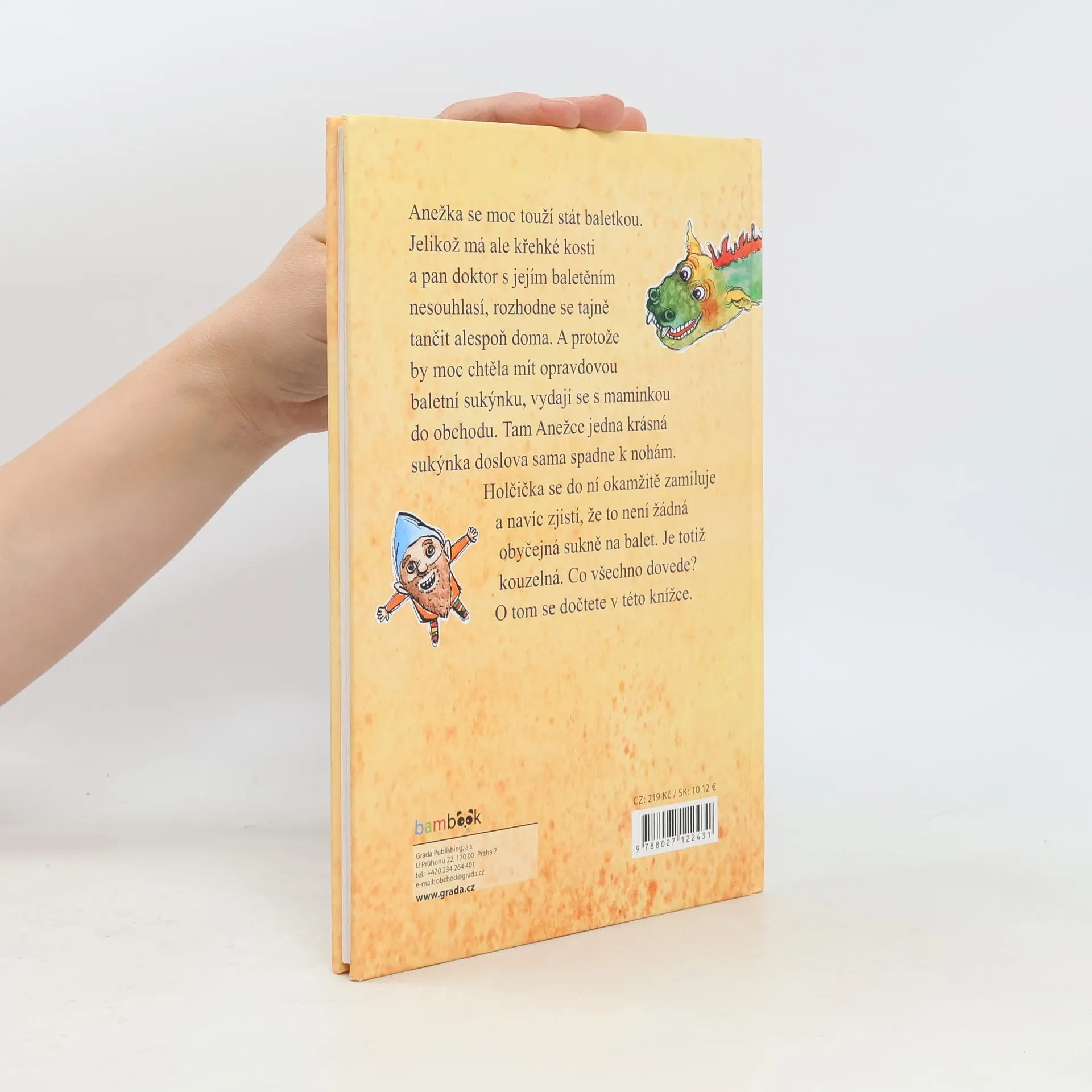 Anežka se moc touží stát baletkou. Má ale křehké kosti a pan doktor s jejím baletěním nesouhlasí, a tak se rozhodne tajně tančit alespoň doma. A protože by moc chtěla mít opravdovou baletní sukýnku, vydají se s maminkou do obchodu. Tam Anežce jedna krásná sukýnka doslova sama spadne k nohám. Holčička se do ní okamžitě zamiluje a navíc zjistí, že to není žádná obyčejná sukně na balet. Je totiž kouzelná. Chtěli byste vědět, co všechno dovede? O tom se dočtete v této knížce.
