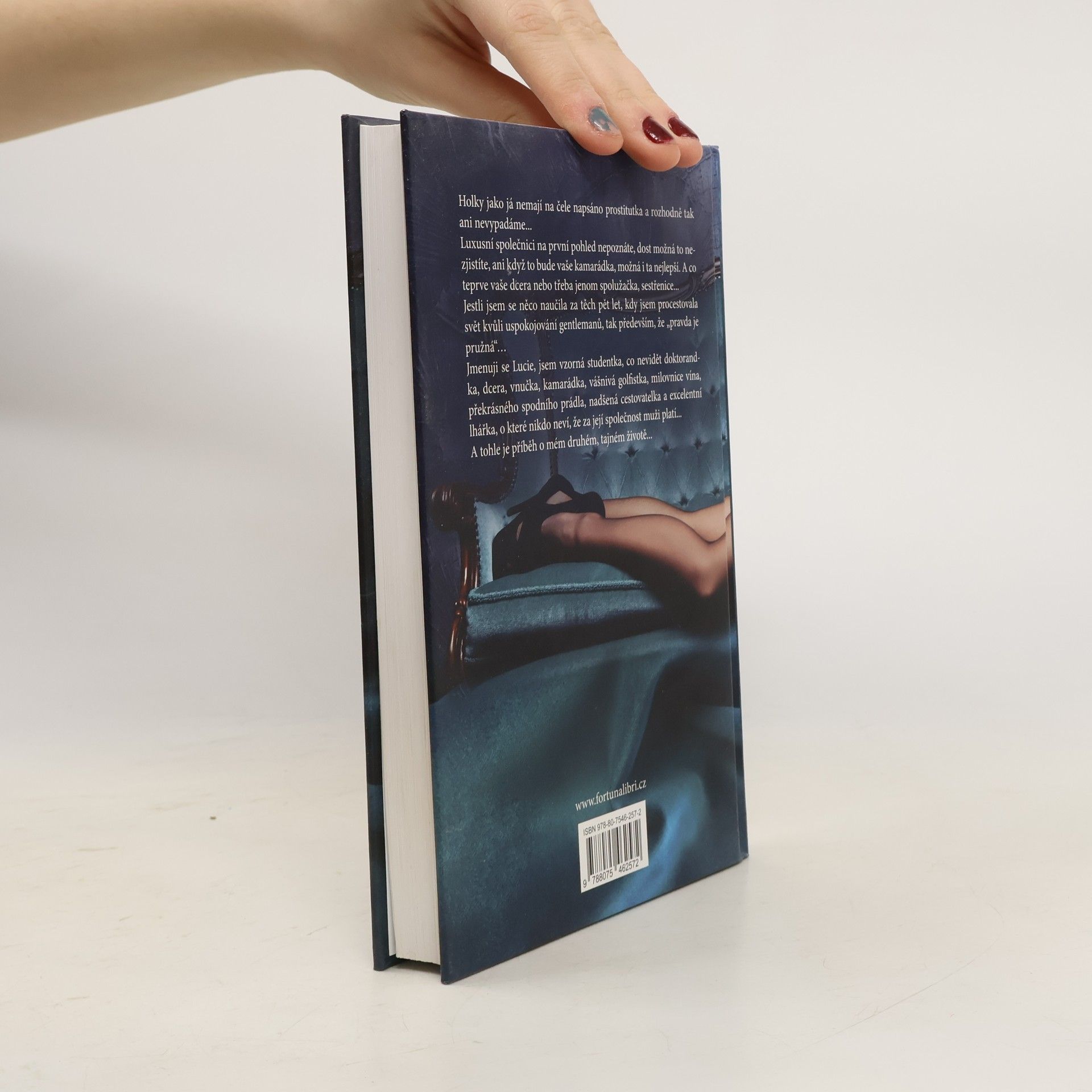 Skutečný příběh luxusní společnice. Holky jako já nemají na čele napsáno prostitutka a rozhodně tak ani nevypadáme. Luxusní společnici na první pohled nepoznáte, dost možná to nezjistíte ani když to bude vaše kamarádka, možná i ta nejlepší. A co teprve vaše dcera nebo třeba jenom spolužačka, sestřenice. Jestli jsem se něco za těch 5 let kdy jsem cestovala uspokojovat touhy gentlemanů z celého světa naučila, tak především, že „pravda je pružná…“ Jmenuji se Lucie, jsem vzorná studentka, co nevidět doktorandka, dcera, vnučka, kamarádka, vášnivá golfistka, milovnice vína, překrásného spodního prádla, nadšená cestovatelka a excelentní lhářka, o které nikdo neví, že za její společnost muži platí. A tohle je příběh o mém druhém tajném životě……