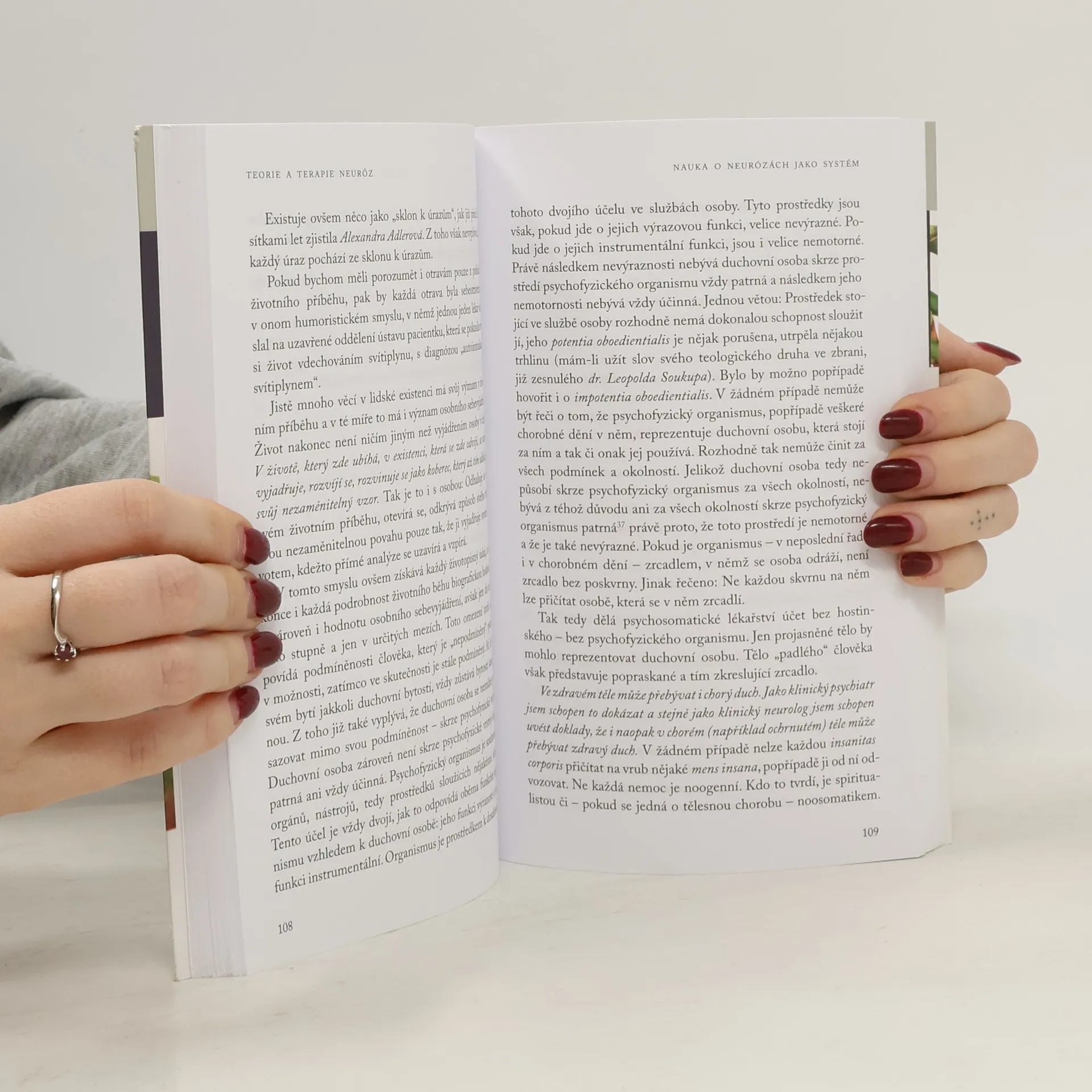 Po obecném výkladu neuróz autor dělí duševní poruchy na endogenní psychózy, psychosomatická onemocnění, funkční onemocnění a neurózy reaktivní, iatrogenní, psychogenní, noogenní a kolektivní. Výraz „noogenní neurózy“ odráží Franklovo přesvědčení, že i problémy duchovního rázu či existenciální krize se mohou zdát zdrojem neurotických obtíží. Kolektivní neurózy zase znamenají neurotické poruchy typické pro ducha doby, v níž daný člověk žije. V druhé části knihy autor představuje dvě hlavní metody léčby noogenních neuróz – logoterapii jakožto terapii vycházející z duchovních zdrojů a existenciální analýzu coby terapii zaměřenou na duchovní oblast a na osobní duchovní existenci. Kniha je doprovázena mnoha kazuistikami.
