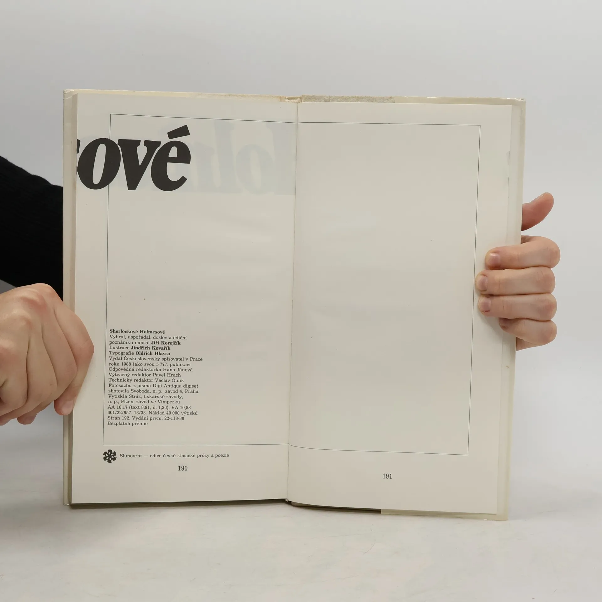 Povídky od různých autorů na detektivní téma.Jsou zde zastoupeny nejrůznější typy povídek od humorných přes literární brak až k psychologickým případům. Prémie edice. Slunovrat: Edice české klasické prózy a poezie. Obsah: 1.Ignát Herrmann - Sherlockové Holmesové 2.Jaroslav Hašek - Zlodějské dobrodružství pana Tevlína 3.Z pamětí amerického detektiva Leóna Cliftona 4.Karel Mečíř - Souboj 5.Karel Poláček - Z vypravování listonošova 6.Eduard Bass - Světlo v tmách 7.Jan Weiss - Miluj svého bližního 8.František Langer - Prohnaný podvodník 9.Karel Čapek - Zmizení herce Bendy 10.Jaroslav Havlíček - Pomsta 11.Emil Vachek - Putování v kruhu