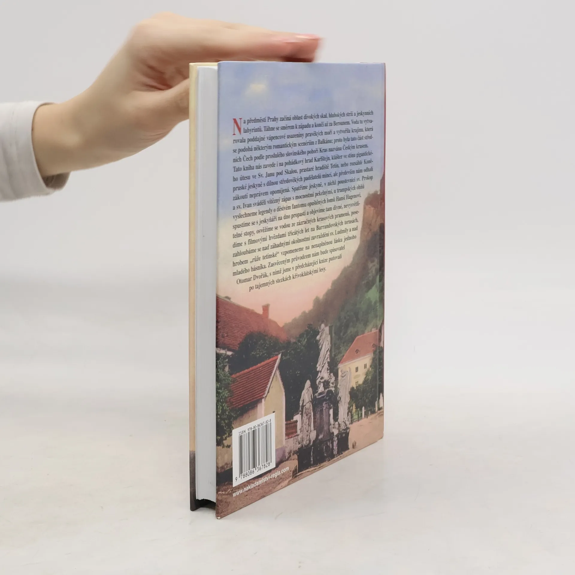 Na předměstí Prahy začíná oblast divoce rozervaných skal, hlubokých strží a jeskynních labyrintů. Táhne se směrem k západu a končí až za Berounem. Voda tady vytvarovala poddajné vápencové usazeniny pravěkých moří a vytvořila krajinu, která se podobá některým romantickým scenériím z Balkánu; proto byla tato část středních Čech podle proslulého slovinského pohoří Kras nazvána Českým krasem. Tato kniha nás zavede i na pohádkový hrad Karlštejn, klášter ve stínu gigantického útesu ve Sv. Janu pod Skalou, prastaré hradiště Tetín, nebo rozsáhlé Koněpruské jeskyně s dílnou středověkých padělatelů mincí, ale především nám odhalí zákoutí neprávem opomíjená. Spatříme jeskyně, v nichž poustevníci sv. Prokop a sv. Ivan sváděli vítězný zápas s mocnostmi pekelnými, u trampských ohňů vyslechneme legendy o děsivém fantomu opuštěných lomů Hansi Hagenovi, spustíme se s jeskyňáři na dno propasti a objevíme tam divné, nevysvětlitelné stopy, osvěžíme se vodou ze zázračných krasových pramenů, posedíme s filmovými hvězdami třicátých let na Barrandovských terasách, zahloubáme se nad záhadnými okolnostmi zavraždění sv. Ludmily a nad hrobem "Růže tetínské" vzpomeneme na nenaplněnou lásku jednoho mladého básníka. Zasvěceným průvodcem nám opět bude spisovatel Otomar Dvořák, s nímž jsme v předcházející knize putovali po tajemných stezkách křivoklátskými lesy