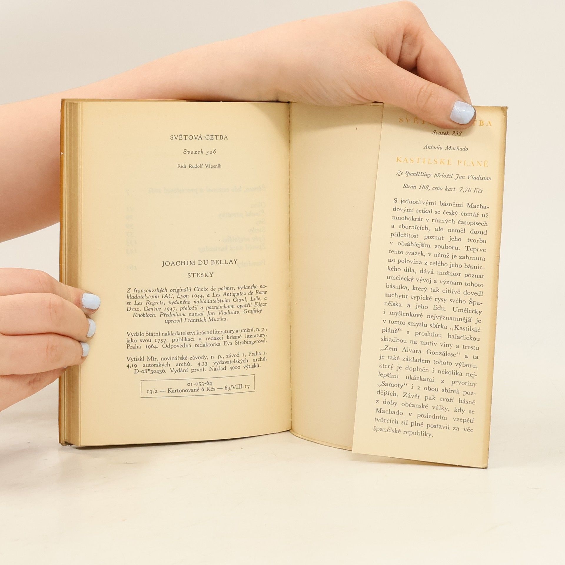 Výbor z díla vynikajícího francouzského básníka 16. století. Obsahuje zejména ukázky ze sbírky sonetů "Oliva" a podstatnou část neméně proslulé sbírky "Stesky", napsané za básníkova pobytu v Římě a odrážející hlavně zvláštní smutek, vrozený jeho osobnosti, touhu po Francii a dojmyz města, které jej vzrušovalo i plnilo steskem zároveň.