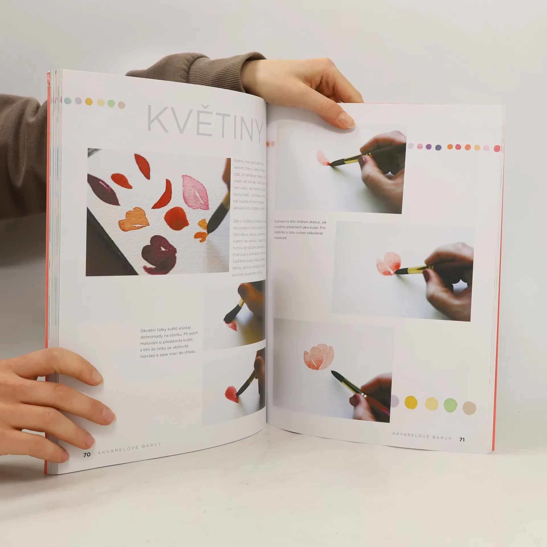 Nastal čas ušpinit si ruce akvarelovými barvami! Často naše jediná zkušenost s vodovkami pochází ze školních lavic a jediná představa o obrázku, který je s nimi možné vytvořit, spočívá v rozpitých barvách na pokrouceném papíře. Podstata akvarelu je ale zcela jiná a dají se s ním vytvořit překrásné detailní obrázky. Stačí vědět, jak na to, což vám prozradí tato kniha. V tomto dynamickém a inspirací nabitém průvodci prozkoumáme možnosti, jak pracovat a hrát si s tímto zábavným médiem. Snadno pochopitelné lekce vás naučí vše, co potřebujete znát k vytváření svých vlastních propracovaných děl. Od základní práce se štětcem a barvou, vhodných pomůcek a technik nanášení barvy přes malování základních tvarů a písmen až po tvorbu překrásných obrázků rostlin, zvířat a vzorů – a mnohem víc! Ať už jste zkušený umělec, který hledá hravý únik, nebo začátečník, který ještě nikdy nedržel v ruce štětec, v knize Akvarelové barvy si každý najde to své. Autorka Kristin Van Leuven vše vysvětluje na jasných konkrétních příkladech a krok za krokem ukazuje, jak namalovat spoustu překrásných a přitom tak jednoduchých obrázků.