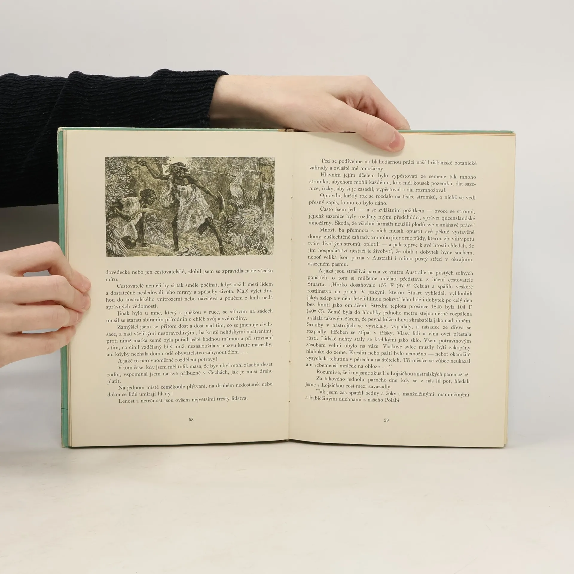Příhody českého lovce ptakopysků. Vyprávění o českém vesničanovi, který se koncem min. století vypravil do Austrálie a po svém návratu obohatil evropská muzea o zajímavé přírodniny. Dobové dřevoryty