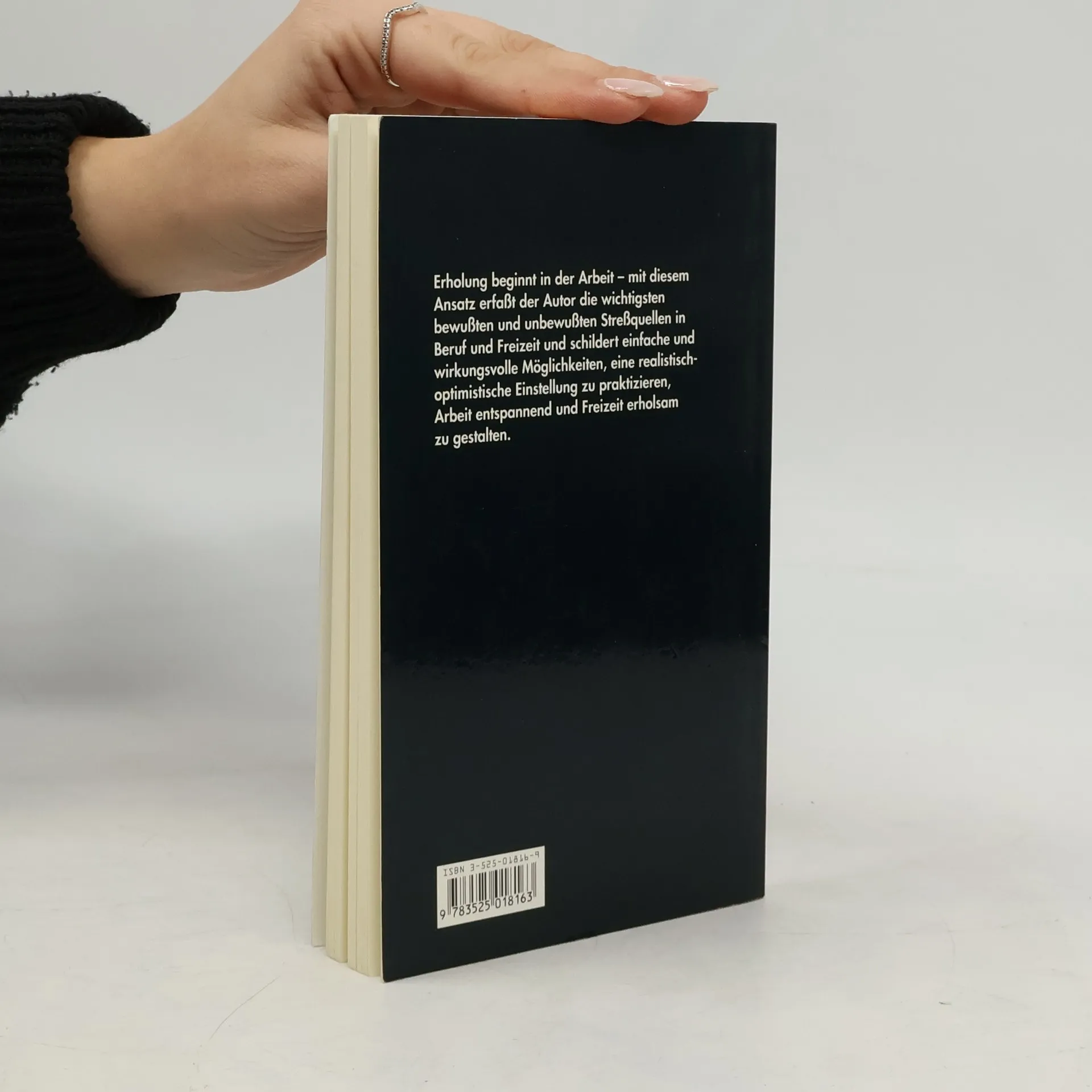 Erholung beginnt in der Arbeit – mit diesem Ansatz erfaßt der Autor die wichtigsten bewußten und unbewußten Streßquellen in Beruf und Freizeit und schildert einfache und wirkungsvolle Möglichkeiten, eine realistisch-optimistische Einstellung zu praktizieren, Arbeit entspannend und Freizeit erholsam zu gestalten. Auf dem Hintergrund eigener Erfahrungen in Hypnose, Autogenem Training, Yoga, als Therapeut, Pfarrer und Marathon-Läufer gibt er praktische Hinweise aus den Bereichen seelischer, körperorientierter und religiöser Streßbewältigung. Ohne ideologische Scheuklappen werden verhaltenstherapeutische und psychodynamische, geistliche und weltliche Methoden angeboten nach der Devise: Gut ist, was hilft.