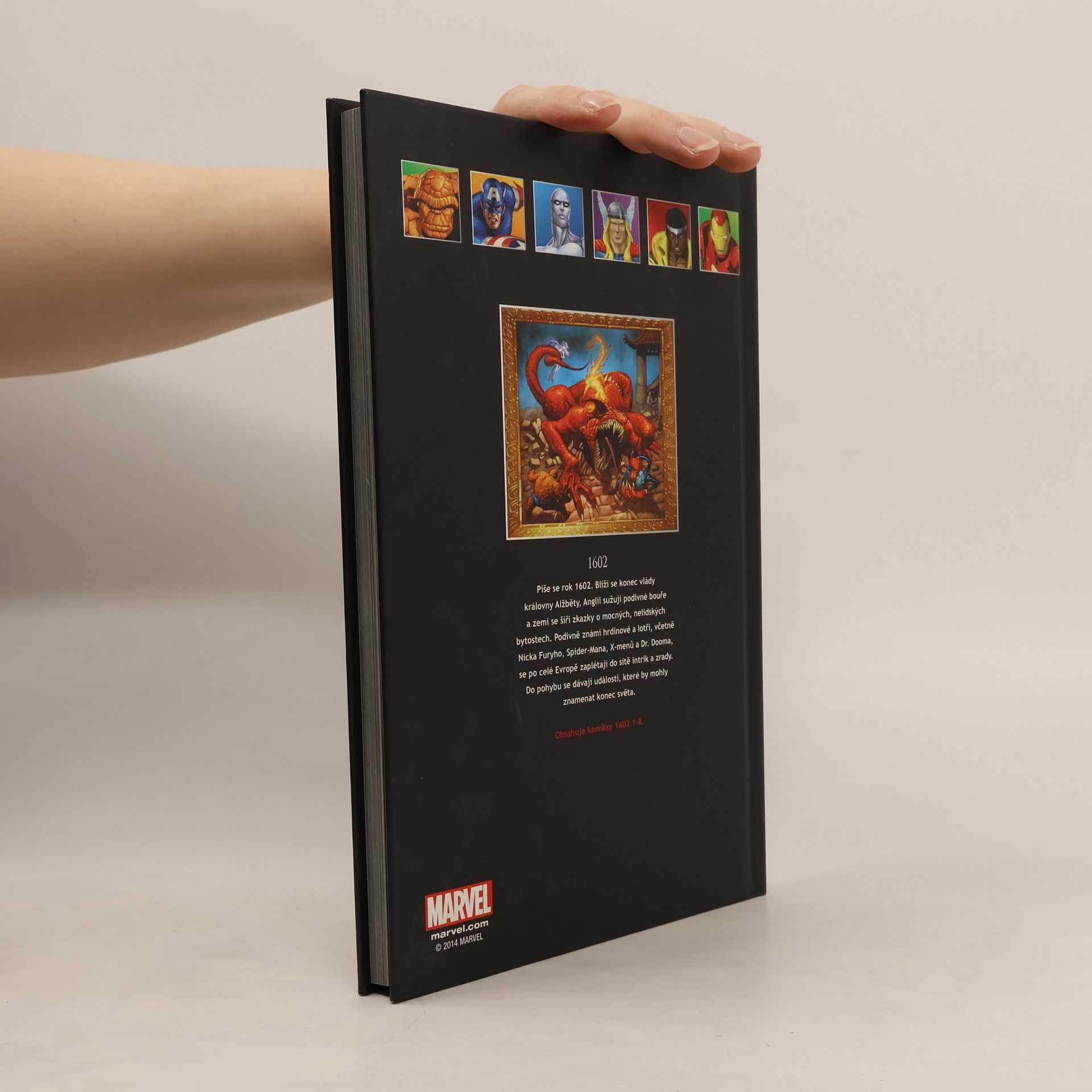 Píše se rok 1602. Blíží se konec vlády královny Alžběty, Anglii sužují podivné bouře a zemí se šíří zkazky o mocných, nelidských bytostech. Podivně známí hrdinové a lotři, včetně Nicka Furyho, Spider-Mana, X-Menů a Dr. Dooma, se po celé Evropě zaplétají do sítě intrik a zrady. Do pohybu se dávají události, které by mohly znamenat konec světa. Nové (rozšířené) vydání jednoho z marvelovských nejslavnějších komiksů!