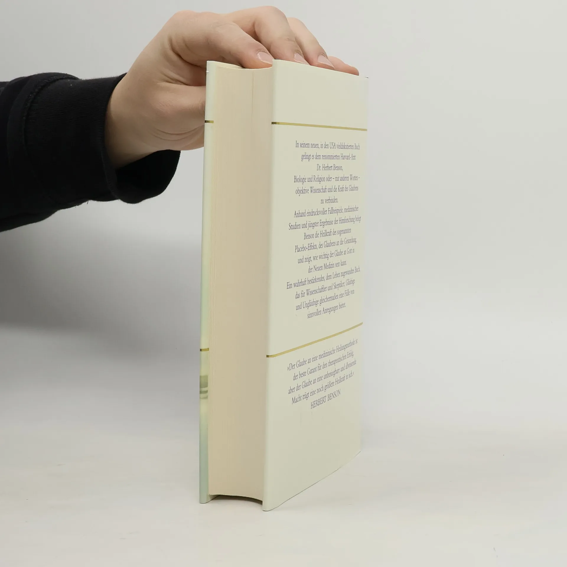 In seinem neuen, in den USA vieldiskutierten Buch gelingt es dem renommierten Harvard-Arzt Dr. Herbert Benson, Biologie und Religion oder - mit anderen Worten - objektive Wissenschaft und die Kraft des Glaubens zu verbinden. Anhand eindrucksvoller Fallbeispiele, medizinischer Studien und jüngster Ergebnisse der Hirnforschung belegt Benson die Heilkraft des sogenannten Placebo-Effekts, des Glaubens an die Gesundung, und zeigt, wie wichtig der Glaube an Gott in der Neuen Medizin sein kann.§Ein wahrhaft bestärkendes, dem Leben zugewandtes Buch, das für Wissenschaftler und Skeptiker, Gläubige und Ungläubige gleichermaßen eine Fülle von sinnvollen Anregungen bietet.