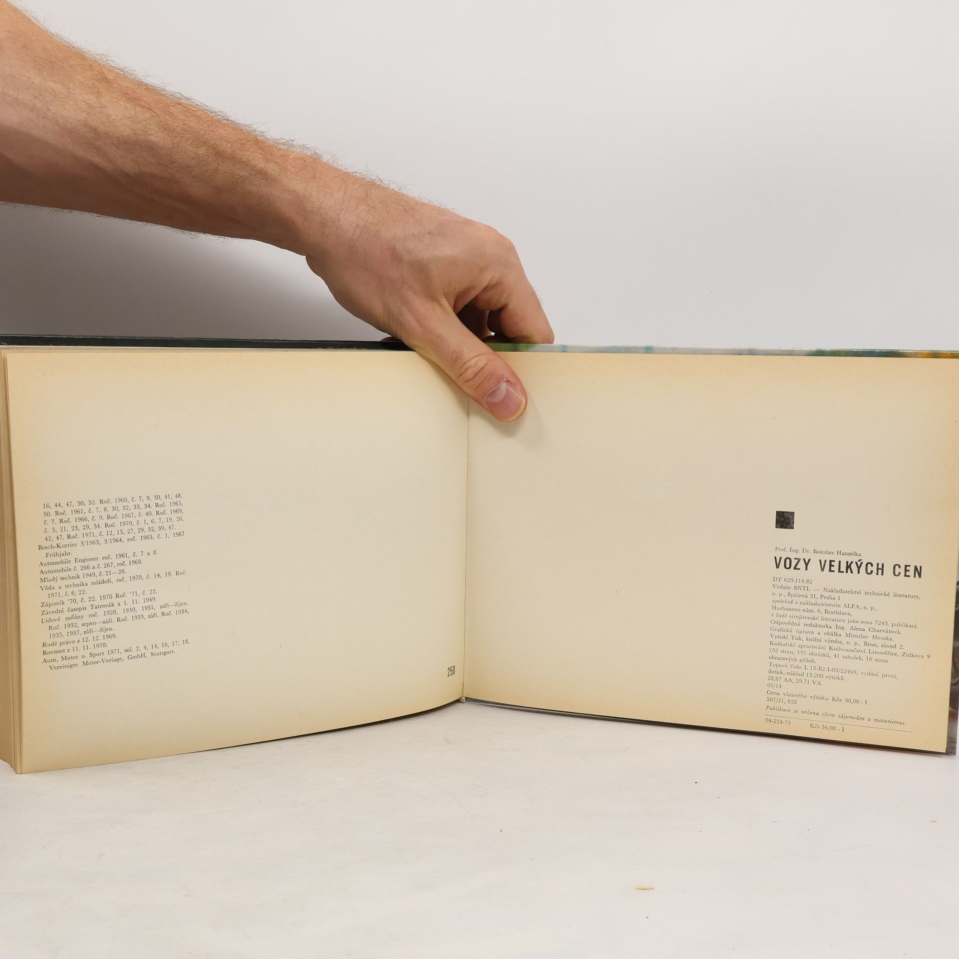 Ve druhém vydání knihy, zachycující technický vývoj závodních automobilů a historii velkých automobilových závodů vůbec, nedošlo k podstatným změnám. Pouze kapitola o soudobých závodních automobilech F 1 byla rozšířena o vůz UOP Shadow-Ford a tabulková část zachytila výsledky z mistrovství světa v roce 1973 a Velké ceny Evropy v letech 1923–1968. 200 obrázků, 41 tabulek. Barev. obr. Václav Král.