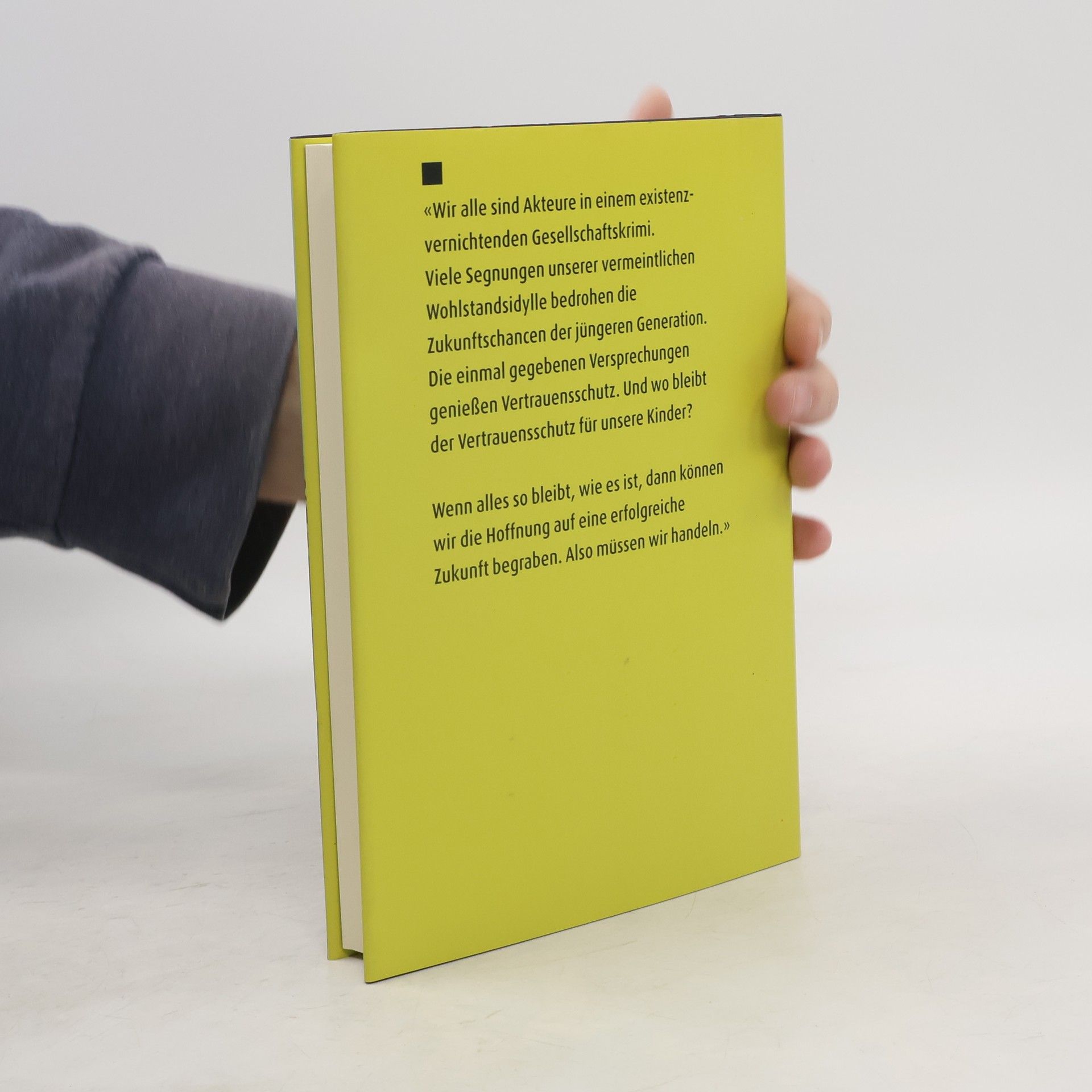 Wieder stellt die Ärztin Dr. Heidi Schüller provokante Thesen zur Situation unseres Sozialstaates auf. Es geht ihr um die Chancen unserer Kinder: "Wir haben die Jugend aus den Augen verloren. Wer Kürzungen bei Fangokuren, wer jede zarte Beschränkung als inhuman verteufelt und den echten Existenzsorgen der Jugend keine Beachtung schenkt, betreibt Raubbau an der Zukunft. Wie sollen unsere Kinder denn die sozialpolitischen Zusagen an die Eltern- und Großelterngeneration erfüllen? Viele erhalten ja nicht einmal mehr die Gelegenheit, über Arbeit auch nur die eigene Existenz zu sichern. Wir müssen die Jungen gezielter fördern, aber auch stärker fordern... Und wir haben keine Zeit mehr zu verlieren."