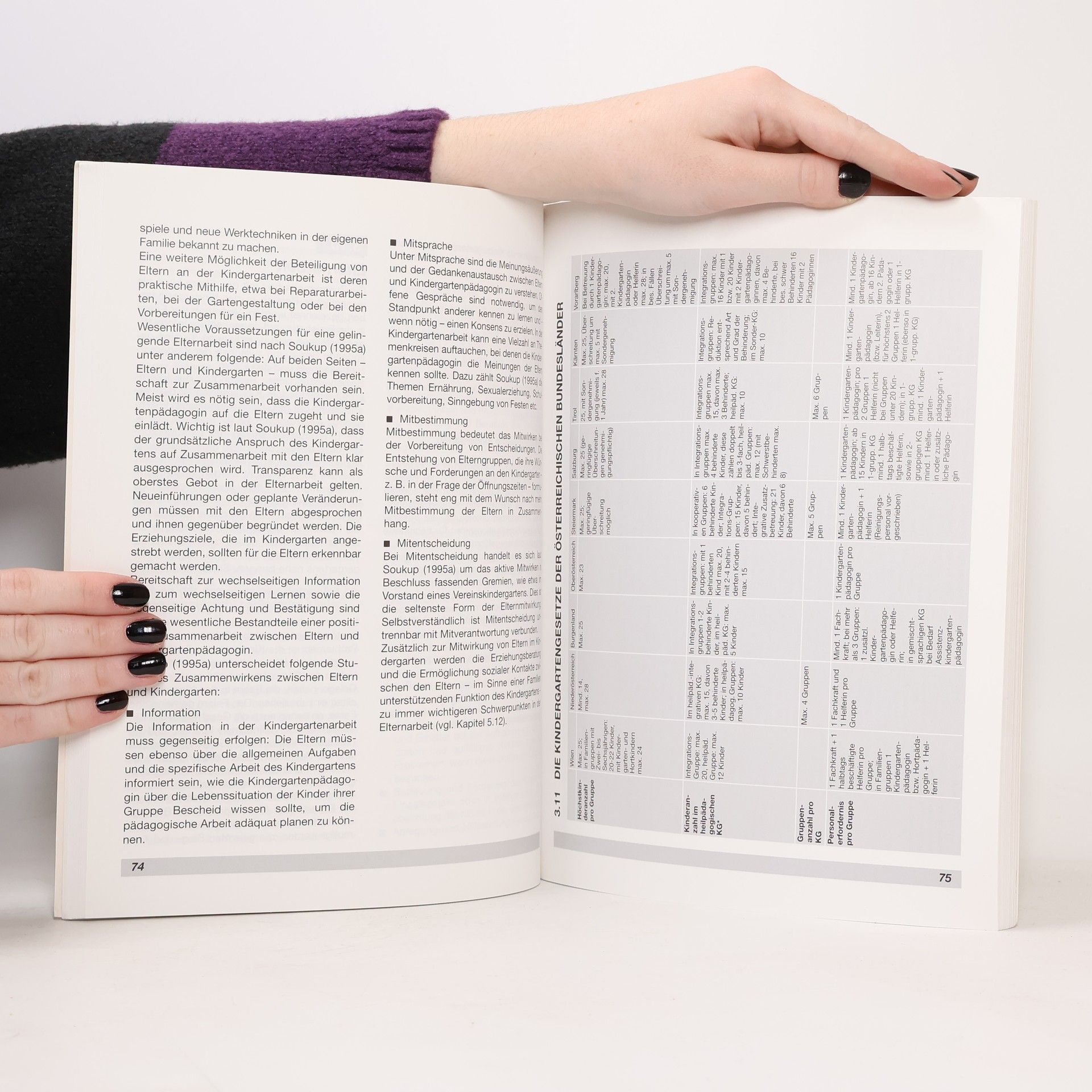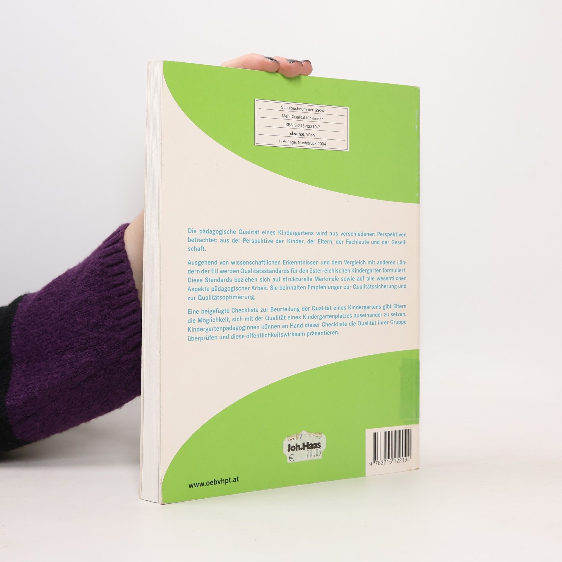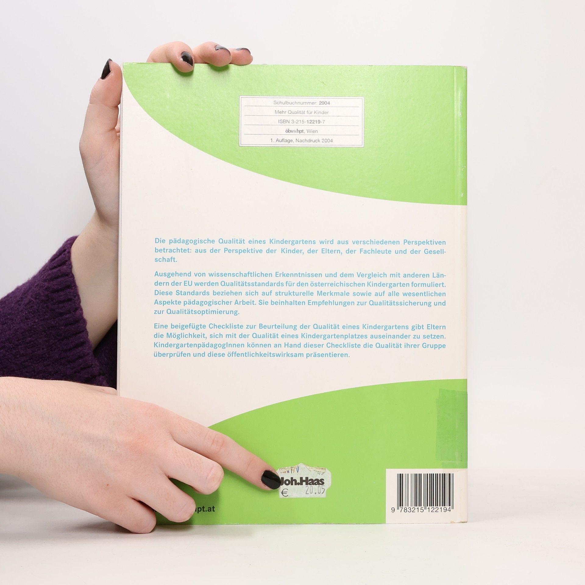 Das Buch beschreibt zunächst die Grundlagen, auf denen die Kindergartenpädagogik in Österreich aufgebaut ist. Auf Grund von wissenschaftlichen Erkenntnissen und dem Vergleich der österreichischen Kindergärten mit Kinderbetreuungseinrichtungen in der EU werden Qualitätsstandards für den österreichischen Kindergarten erarbeitet. Diese Standards beziehen sich unter anderem auf die Gruppengröße und den Erzieher-Kind-Schlüssel, auf die Raumgestaltung, auf die Ausstattung mit Spiel- und Lernmitteln, auf die Betreuung und Pflege der Kinder, auf das Erziehungs- und Bildungskonzept sowie auf die Qualifikation und die Arbeitsbedingungen der Kindergärtnerinnen. Es werden für jeden Bereich Empfehlungen zur Qualitätssicherung und Qualitätsoptimierung gegeben. Das Buch enthält auch eine Checkliste zur Beurteilung der Qualität eines Kindergartens. Die Checkliste kann Eltern bei der Suche nach einem Kindergartenplatz helfen, die Qualität eines Kindergartens zu beurteilen. Kindergärtnerinnen und Leiterinnen können anhand dieses Fragenkatalogs die Rahmenbedingungen in ihrem Kindergarten sowie ihre pädagogische Arbeit Punkt für Punkt selbst überprüfen und feststellen, wo Verbesserungen notwendig sind.