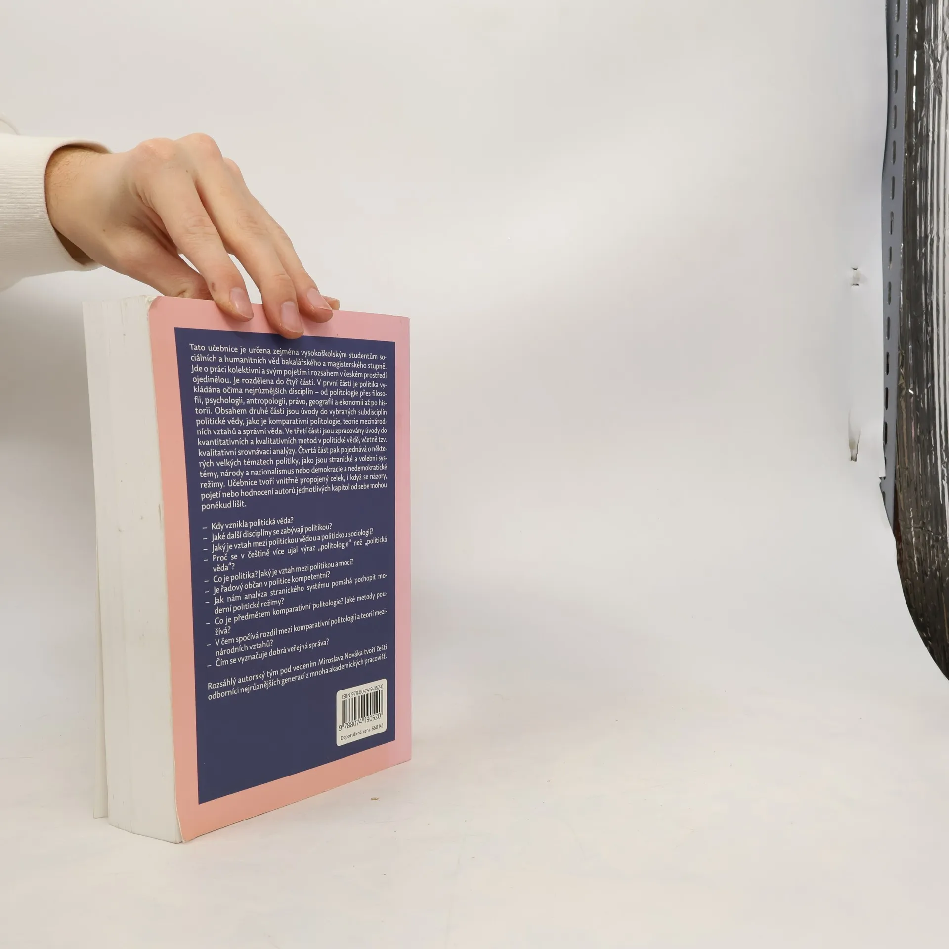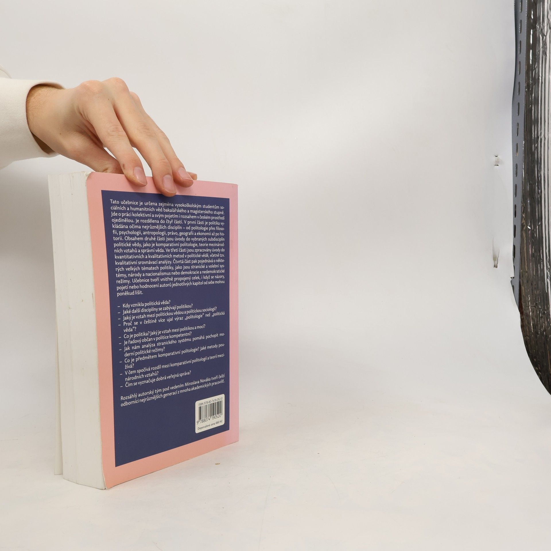 Tato učebnice je určena zejména vysokoškolským studentům sociálních a humanitních věd bakalářského a magisterského stupně. Jde o práci kolektivní a svým pojetím i rozsahem v českém prostředí ojedinělou. Je rozdělena do čtyř částí. V první části je politika vykládána očima nejrůznějších disciplín - od politologie přes filosofii, psychologii, antropologii, právo, geografii a ekonomii až po historii. Obsahem druhé části jsou úvody do vybraných subdisciplín politické vědy, jako je komparativní politologie, teorie mezinárodních vztahů a správní věda. Ve třetí části jsou zpracovány úvody do kvantitativních a kvalitativních metod v politické vědě, včetně tzv. kvalitativní srovnávací analýzy. Čtvrtá část pak pojednává o některých velkých tématech politiky, jako jsou stranické a volební systémy, národy a nacionalismus nebo demokracie a nedemokratické režimy. Učebnice tvoří vnitřně propojený celek, i když se názory, pojetí nebo hodnocení autorů jednotlivých kapitol od sebe mohou poněkud lišit.