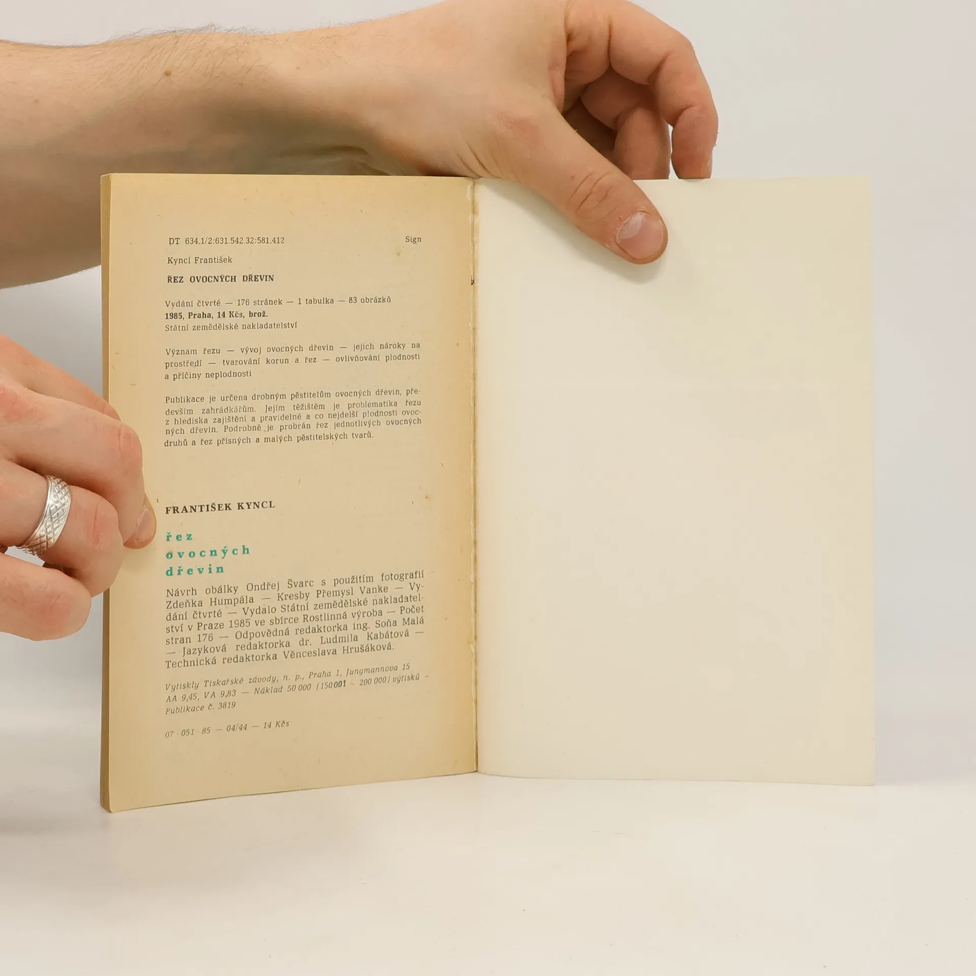 Publikace je určena drobným pěstitelům ovocných dřevin, především zahrádkářům. Jejím těžištěm je problematika řezu z hlediska zajištění pravidelné a co nejdelší plodnosti ovocných dřevin. Podrobně je probrán řez jednotlivých ovocných druhů a řez přísných a malých pěstitelských tvarů. 176 stránek, 1 tabulka, 83 obrázků. Vydání třetí. Návrh obálky Ondřej Švarc s použitím fotografie Zdeňka Humpála.