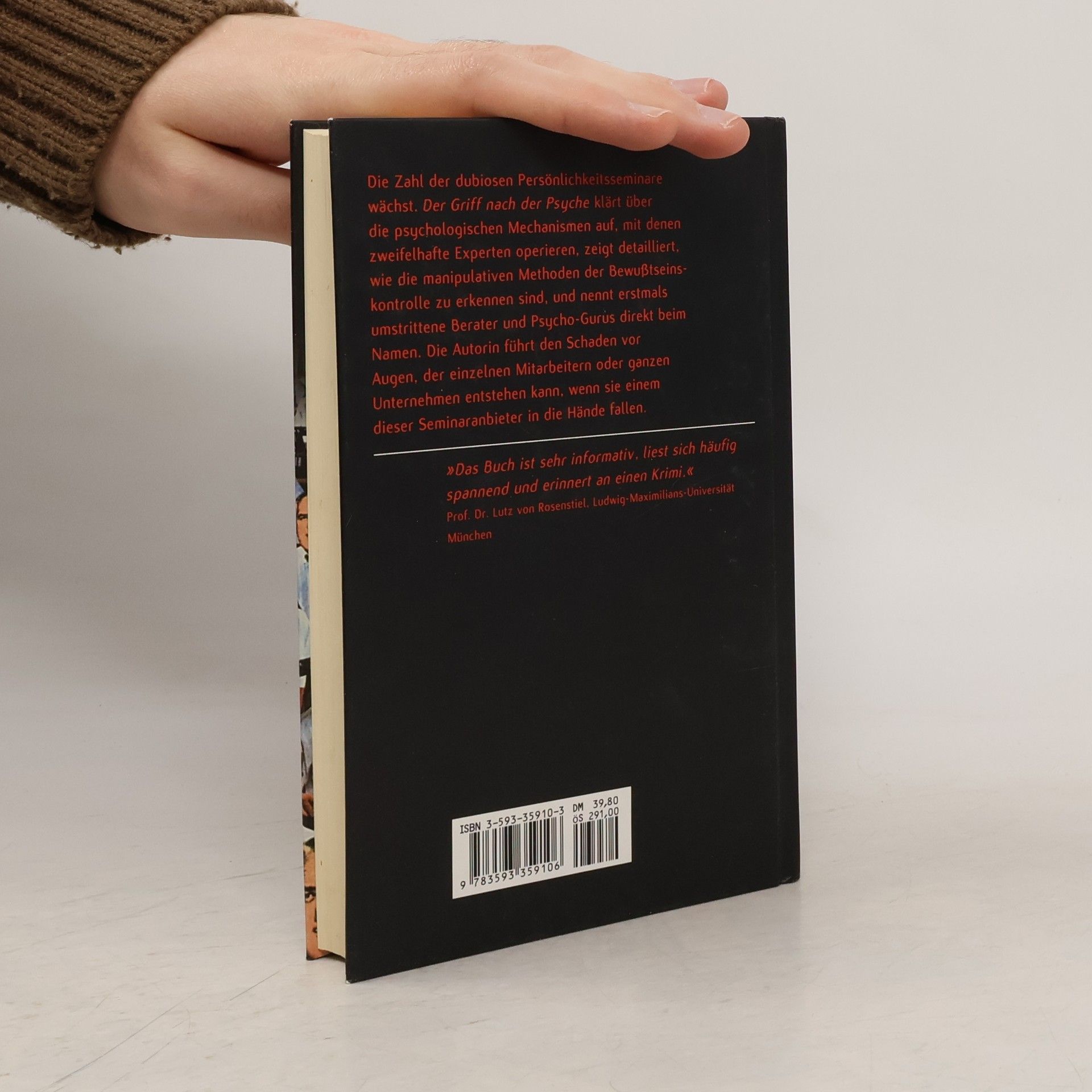 Die Zahl der dubiosen Persönlichkeitsseminare wächst. Das Buch klärt über die psychologischen Mechanismen auf, mit denen zweifelhafte Experten operieren, zeigt detailliert, wie die manipulativen Methoden der Bewußtseinskontrolle zu erkennen sind und nennt erstmals umstrittene Berater und PsychoGurus direkt beim Namen. Die Autorin führt den Schaden vor Augen, der einzelnen Mitarbeitern oder auch einem ganzen Unternehmen entstehen kann, wenn sie einem dieser Seminaranbieter in die Hände fallen.