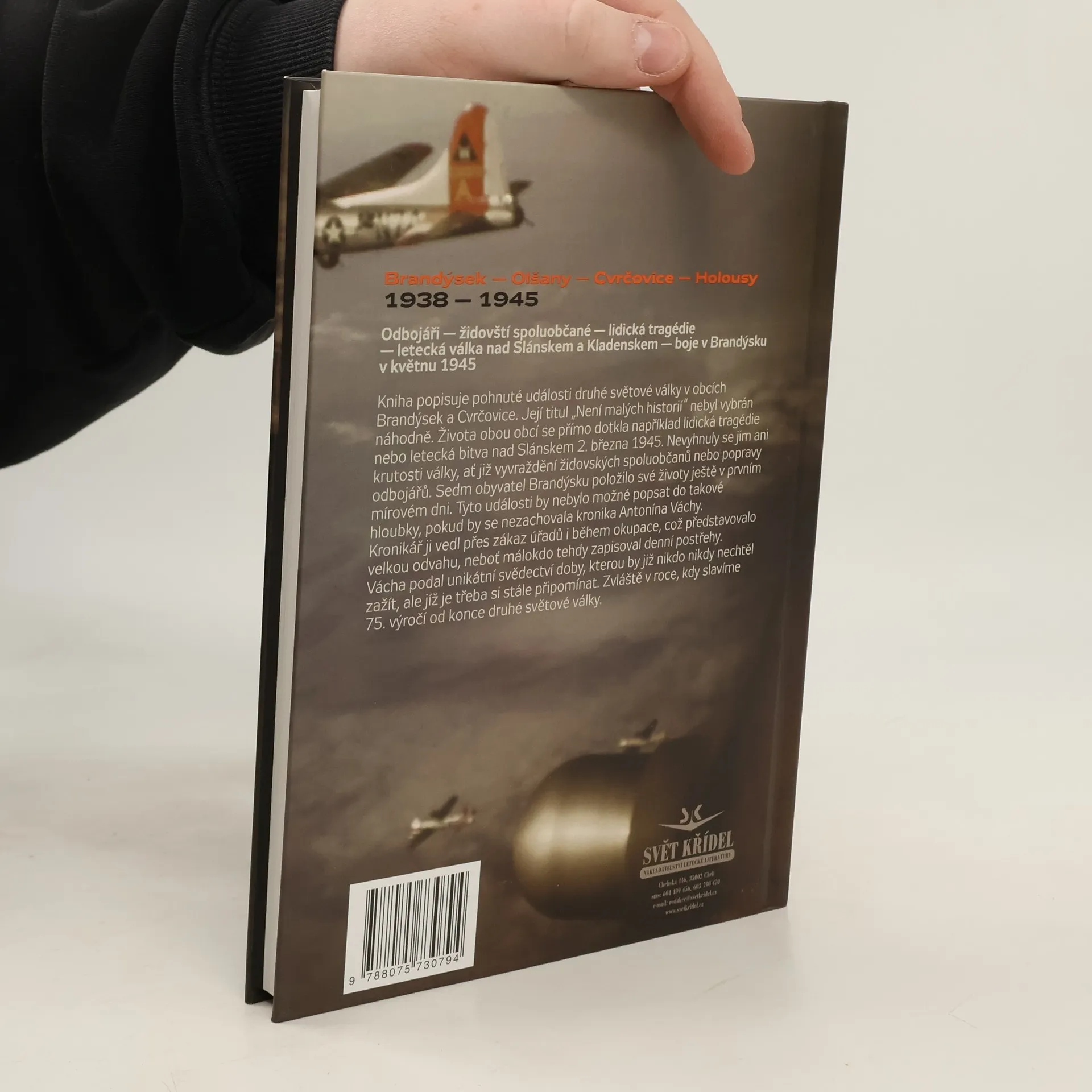 Kniha popisuje pohnuté události druhé světové války v obcích Brandýsek a Cvrčovice. Její titul „Není malých historií“ nebyl vybrán náhodně. Života obou obcí se přímo dotkla například lidická tragédie nebo letecká bitva nad Slánskem 2. března 1945. Nevyhnuly se jim ani krutosti války, ať již vyvraždění židovských spoluobčanů nebo popravy odbojářů. Sedm obyvatel Brandýsku položilo své životy ještě v prvním mírovém dni. Tyto události by nebylo možné popsat do takové hloubky, pokud by se nezachovala kronika Antonína Váchy. Kronikář ji vedl přes zákaz úřadů i během okupace, což představovalo velkou odvahu, neboť málokdo tehdy zapisoval denní postřehy. Jeho kronika je unikátním svědectvím doby, kterou by již nikdo nikdy nechtěl zažít, ale jíž je třeba si stále připomínat. Zvláště v roce, kdy slavíme 75. výročí od konce druhé světové války. Součástí této publikace jsou kromě kapitoly o letecké bitvě 2. března 1945 také kapitoly o letecké válce nad Slanskem a Kladenskem v letech 1944 až 1945 (například nouzový shoz bomb u Vrapic 12. září 1944 a bombadrování kladenského nádraží 17. dubna 1945), útocích hloubkařů v regionu a vzdušných soubojích amerických stíhačů s německými proudovými letadly. Či kapitola o rodácích ze Cvrčovic, rakousko-uhreském a československém pilotovi Karlovi Jandovi a palubnímu střelci 311. československého bombardovací perutě Václavovi Spitzovi.
