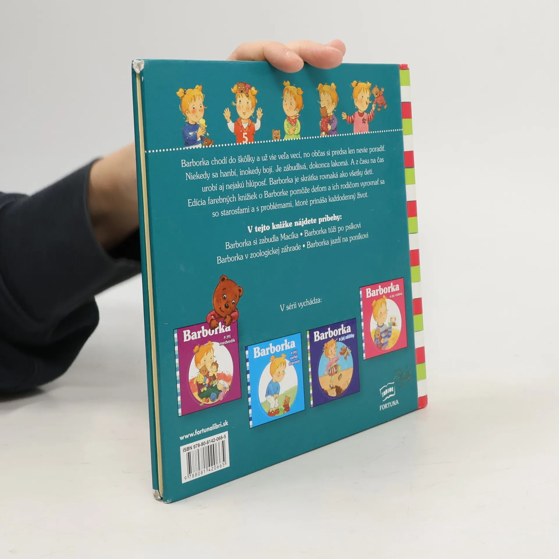 Barborka chodí do škôlky a už vie veľa vecí, no občas si predsa len nevie poradiť. Niekedy sa hanbí, inokedy sa bojí. Je zábudlivá, dokonca lakomá. A z času na čas urobí aj nejakú hlúposť. Barborka je skrátka rovnaká ako všetky deti. Edícia farebných knižiek o Barborke pomôže deťom a ich rodičom vyrovnať sa so starosťami a s problémami, ktoré prináša každodenný život. V tejto knižke nájdete príbehy: Barborka si zabudla Macíka • Barborka túži po psíkovi Barborka v zoologickej záhrade • Barborka jazdí na poníkovi