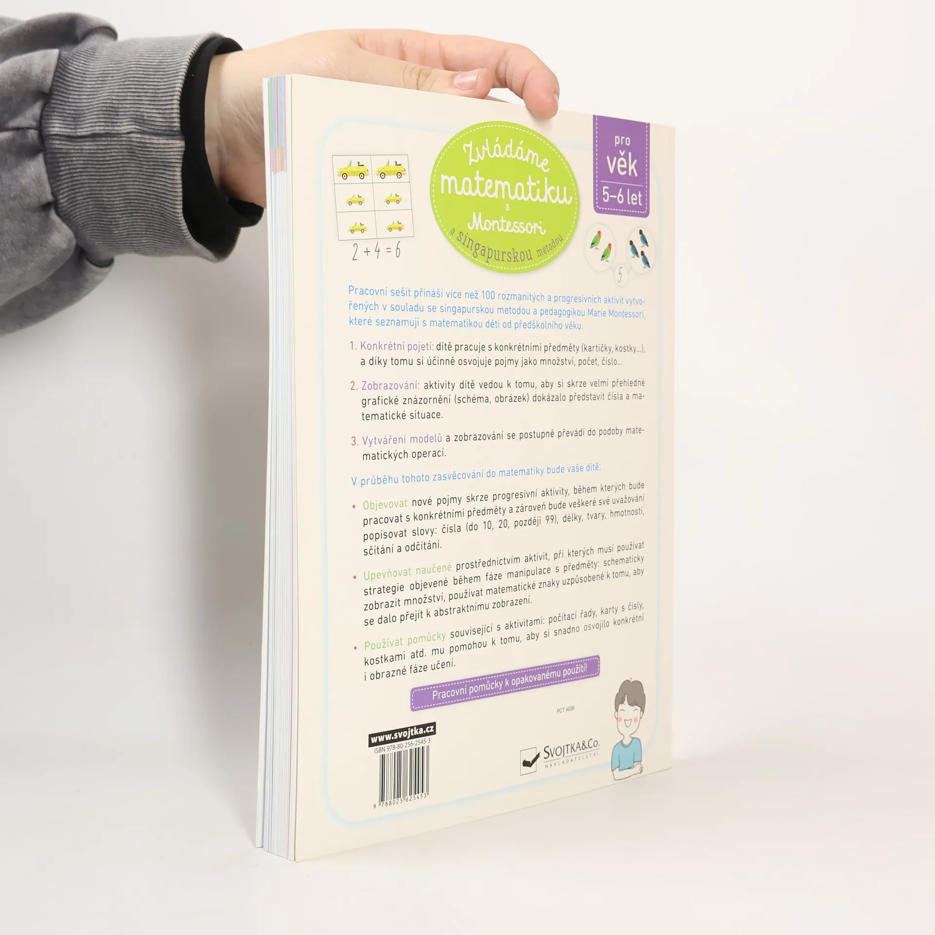 Pracovní sešit přináší více než 100 rozmanitých a progresivních aktivit vytvořených v souladu se singapurskou metodou a pedagogikou Marie Montessori, které seznamují s matematikou děti od předškolního věku. Ideální pro učení prvních matematických operací! Konečně rozumíme matematice odmala! Přístup prezentovaný v tomto pracovním sešitu vychází z reálného prostředí: na začátku každé lekce najdete praktické cvičení. Stovku obsažných aktivit navrhl pedagog. Na konci najdete pracovní pomůcky k vystřižení a opakovanému použití.