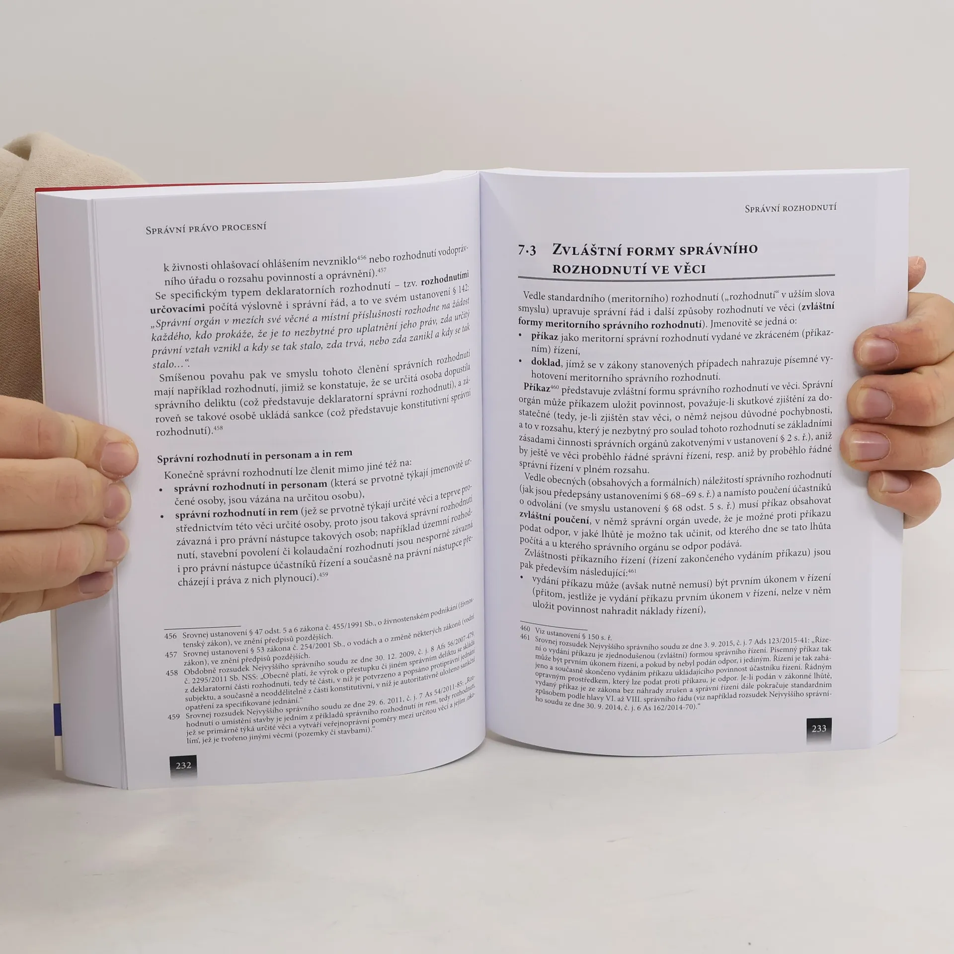 Aktualizované a rozšířené vydání učebnice poskytuje, vedle potřebného teoretického základu, důkladný a vhodně strukturovaný výklad procesních postupů veřejné správy. Autoři vycházejí ze správního řádu jako stěžejního procesního předpisu, s důrazem položeným na obecnou úpravu správního řízení, s nově připojeným výkladem řízení o přestupcích. Přiblížena je úzce navazující oblast soudního přezkoumání. Zapracovány jsou poznatky z aplikace správního řádu, a také úpravy soudního přezkumu, zohledněny jsou změny, k nimž došlo v příslušných zákonných úpravách od minulého zpracování publikace. Reflektován je vývoj názorů na některé podstatné procesní otázky (a některé související hmotněprávní), jak se projevuje v rovině teoretické, metodické, a také v judikatuře. Důkladně je podána oblast základních zásad činnosti správních orgánů, přiblížen je evropský kontext správního procesu a východiska práva na spravedlivý proces. Problematika jednotlivých druhů postupů správních orgánů je podána přehledně, v logických souvislostech, jak vychází z obecné úpravy, s využitím konkrétních příkladů, a také z vybraných zvláštních úprav. Čtenáři jsou tak usnadněny, za využití nezbytného teoretického základu, orientace a pochopení, v potřebné konkrétnosti, poměrně rozsáhlé a strukturované oblasti procesních postupů správních orgánů, a jejich přezkoumání.