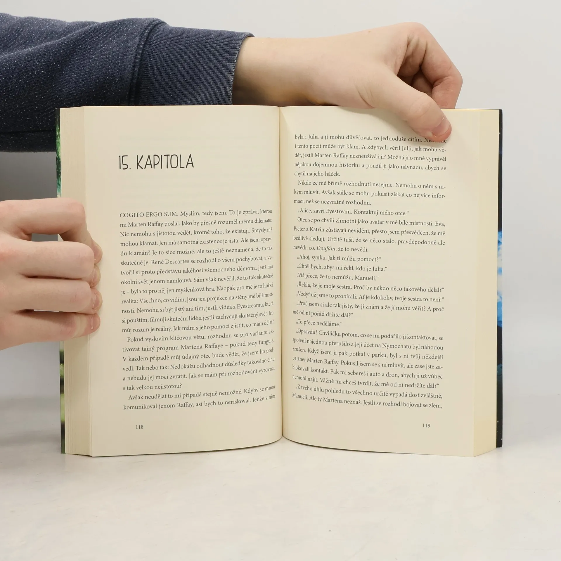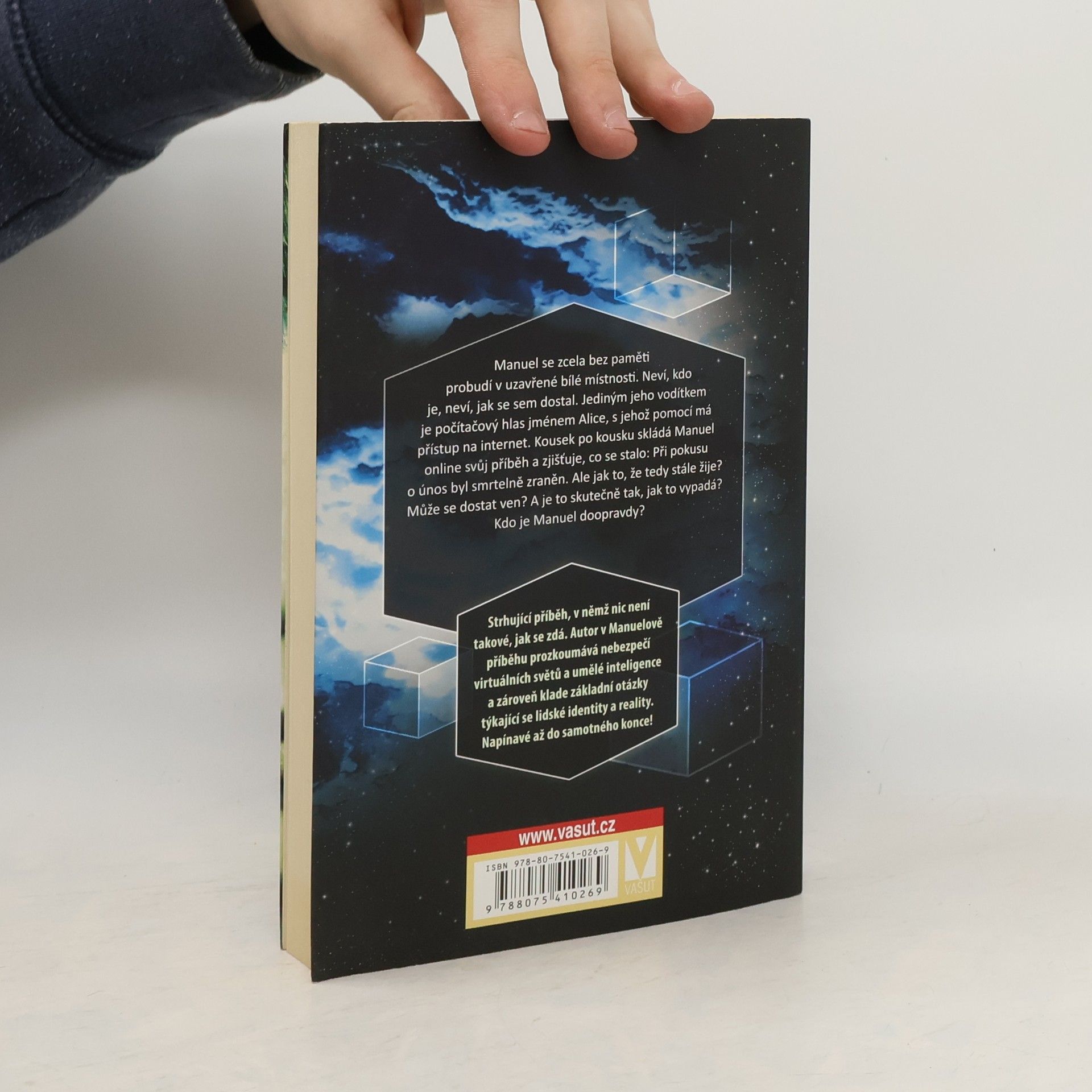 Manuel se zcela bez paměti probudí v uzavřené bílé místnosti. Neví, kdo je, neví, jak se sem dostal. Jediným jeho vodítkem je počítačový hlas jménem Alice, s jehož pomocí má přístup na internet. Kousek po kousku skládá Manuel online svůj příběh a zjišťuje, co se stalo: Při pokusu o únos byl smrtelně zraněn. Ale jak to, že tedy stále žije? Může se dostat ven? A je to skutečně tak, jak to vypadá? Kdo je Manuel doopravdy? Strhující příběh, v němž nic není takové, jak se zdá. Autor v Manuelově příběhu prozkoumává nebezpečí virtuálních světů a umělé inteligence a zároveň klade základní otázky týkající se lidské identity a reality. Napínavé až do samotného konce!