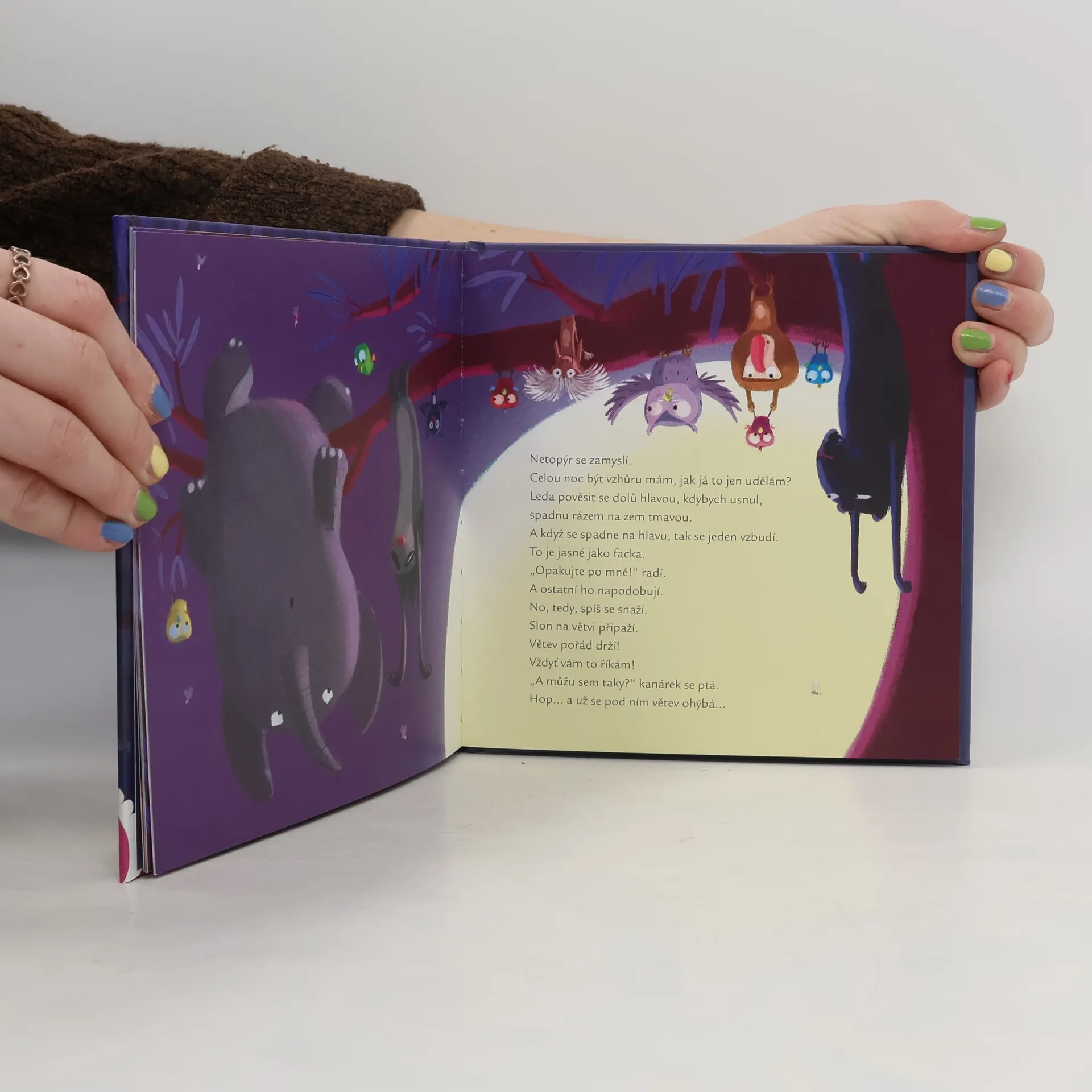 Kdysi spával netopýr jako všichni ostatní – vleže a v noci. Ale budily ho noční můry. Ostatní zvířátka z něj byla pořádně zoufalá. Víte, proč najednou začal spát hlavou dolů? A proč je v noci vzhůru? Slepičí babička vám všechno poví.