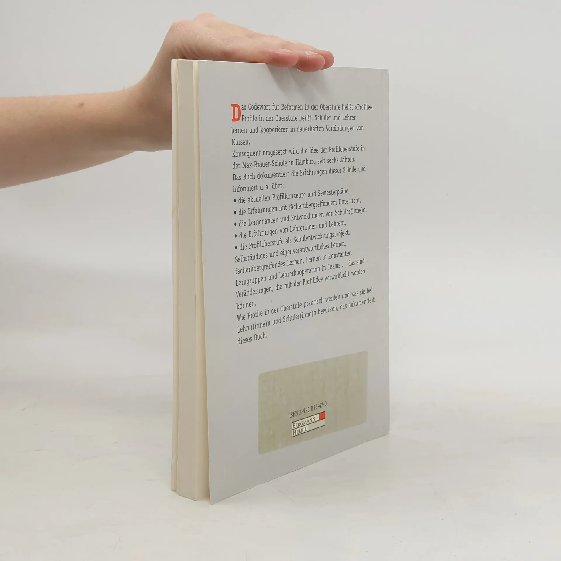 Codewörter für die Entwicklung der Oberstufe sind eigenständiges Lernen, kooperatives Lernen, Lernen in Fächerverbindungen und Lehrerkooperation in Teams. dafür steht der Begriff „Profile“. Erfunden und konsequent umgesetzt wurde die Idee der Profiloberstufe in der Max-Brauer-Schule in Hamburg. Das Buch dokumentiert die Erfahrungen und informiert u. a. über:• das Gesamtkonzept, die Profile und Semesterpläne, dieses Buch.• die Erfahrungen mit fächerübergreifendem Unterricht,• die Lernchancen der SchülerInnen,• das Konzept systematischer SchulentwicklungsarbeitWie die Profilidee als Projekt einer unterrichtszentrierten Schulentwicklungsarbeit praktisch wird, das dokumentiert dieses Buch vom Konzept bis zur Evaluation.