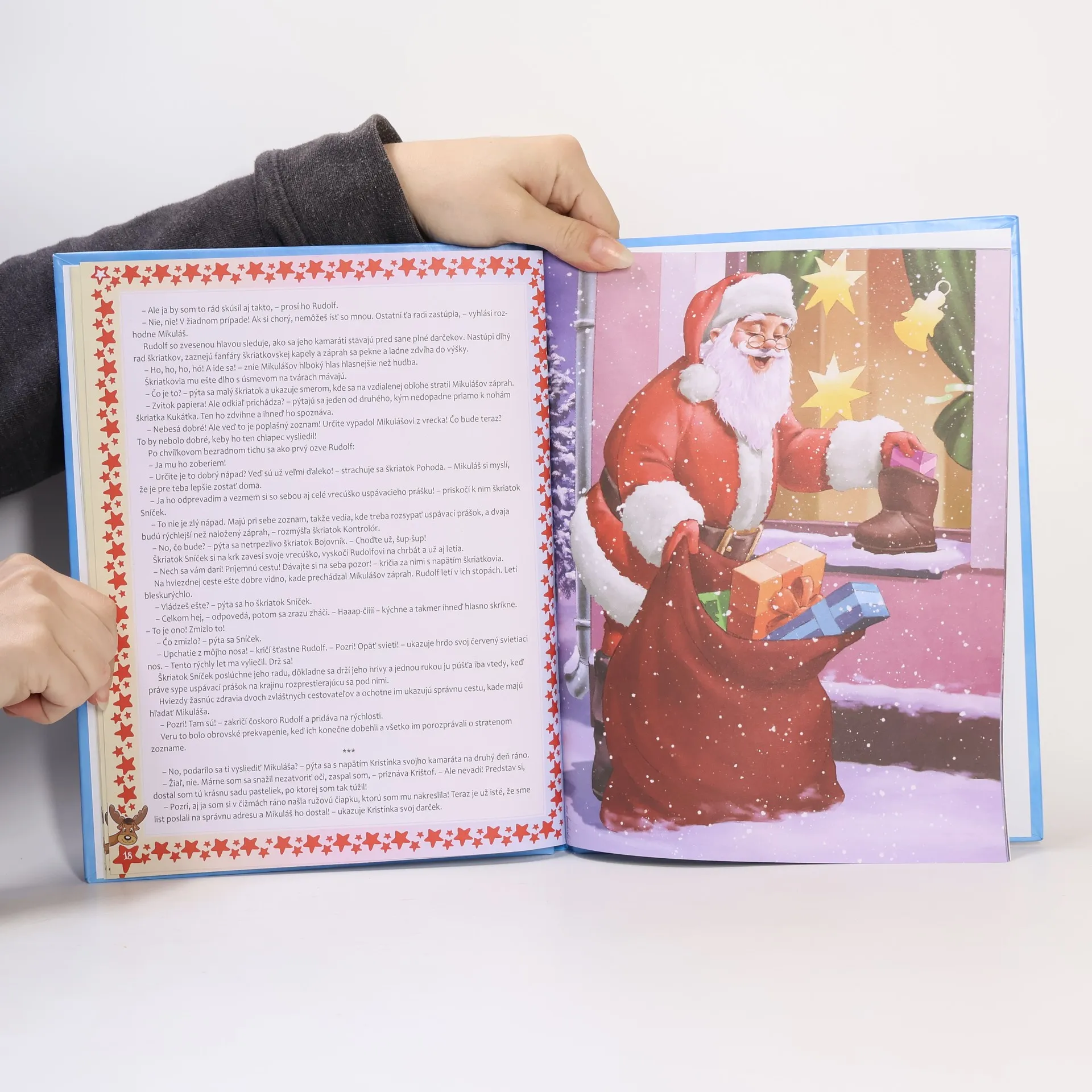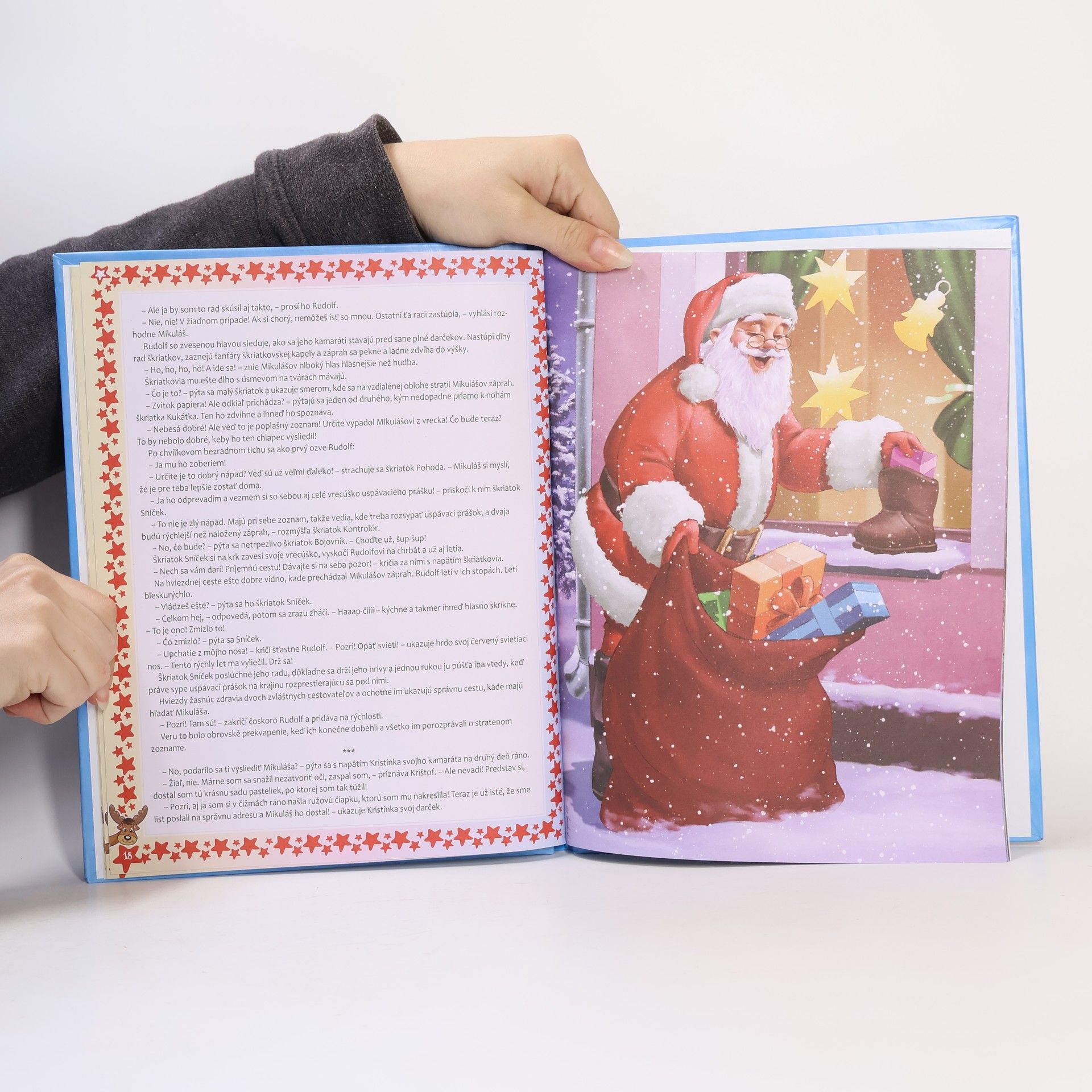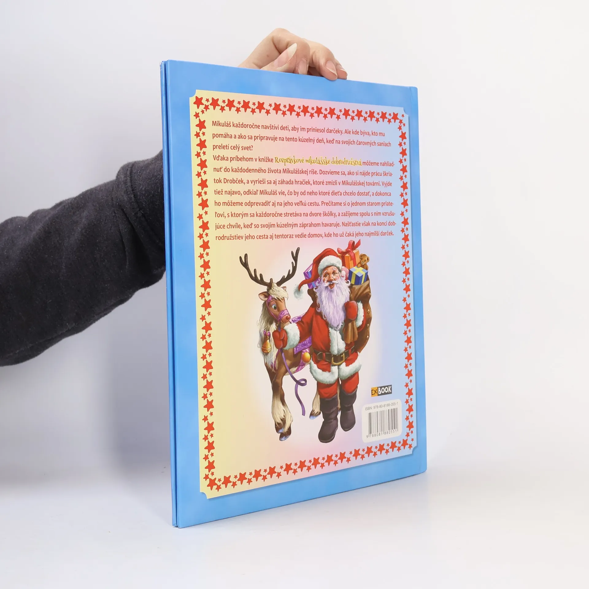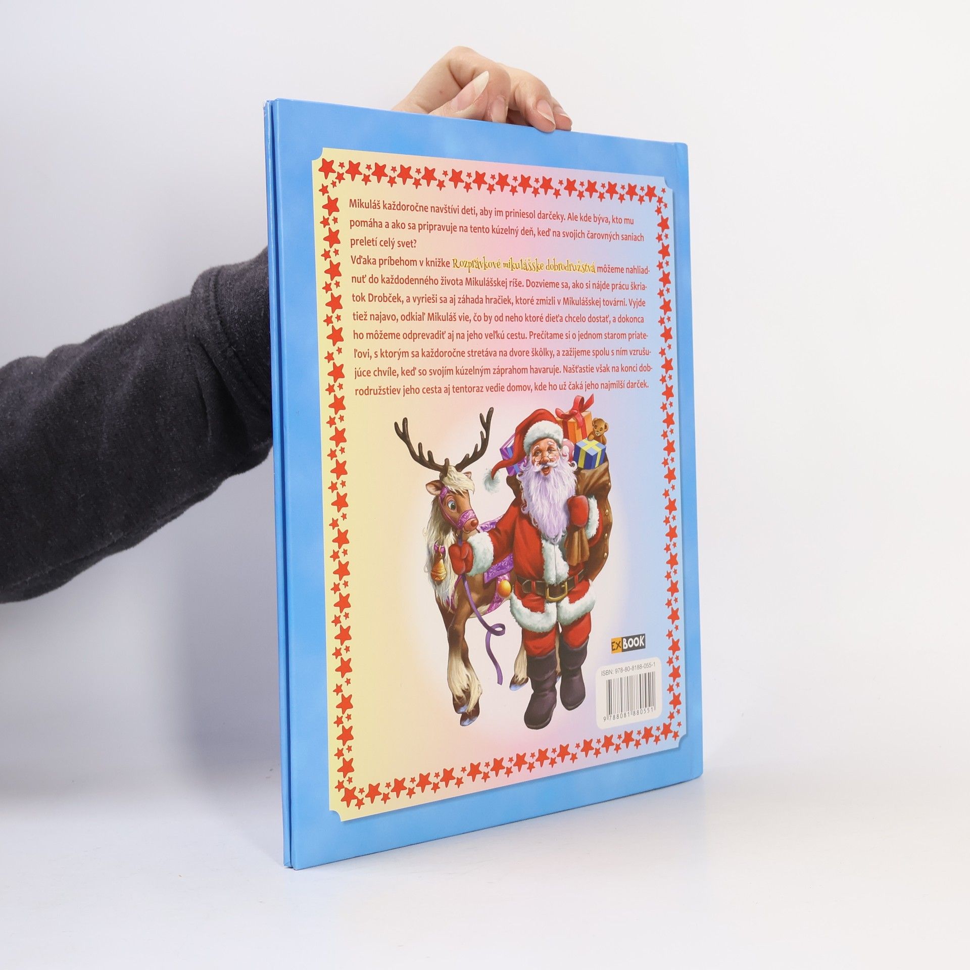 Mikuláš každoročne navštívi deti, aby im priniesol darčeky. Ale kde býva, kto mu pomáha a ako sa pripravuje na tento kúzelný deň, keď na svojich čarovných saniach preletí celý svet ? Vďaka príbehom v knižke Rozprávkové mikulášske dobrodružstvá môžeme nahliadnuť do každodenného života Mikulášskej ríše. Dozvieme sa, ako si nájde prácu škriatok Drobček, a vyrieši sa aj záhada hračiek, ktoré zmizli v Mikulášskej továrni. Vyjde tiež najavo, odkiaľ Mikuláš vie, čo by od neho ktoré dieťa chcelo dostať, a dokonca ho môžeme odprevadiť aj na jeho veľkú cestu. Prečítame si o jednom starom priateľovi, s ktorým sa každoročne stretáva na dvore škôlky a zažijeme spolu s ním vzrušujúce chvíle, keď so svojím kúzelným záprahom havaruje. Našťastie však na konci dobrodružstiev jeho cesta aj tentoraz vedie domov, kde ho už čaká jeho najmilší darček. Rozprávky: Ľadové mračná, Škriatok Drobček si hľadá prácu, Kam zmizli hračky, Skutočný Mikuláš, Starý priateľ, Nehoda v lese, Darček pre Mikuláša. Prvé vydanie v slovenčine.