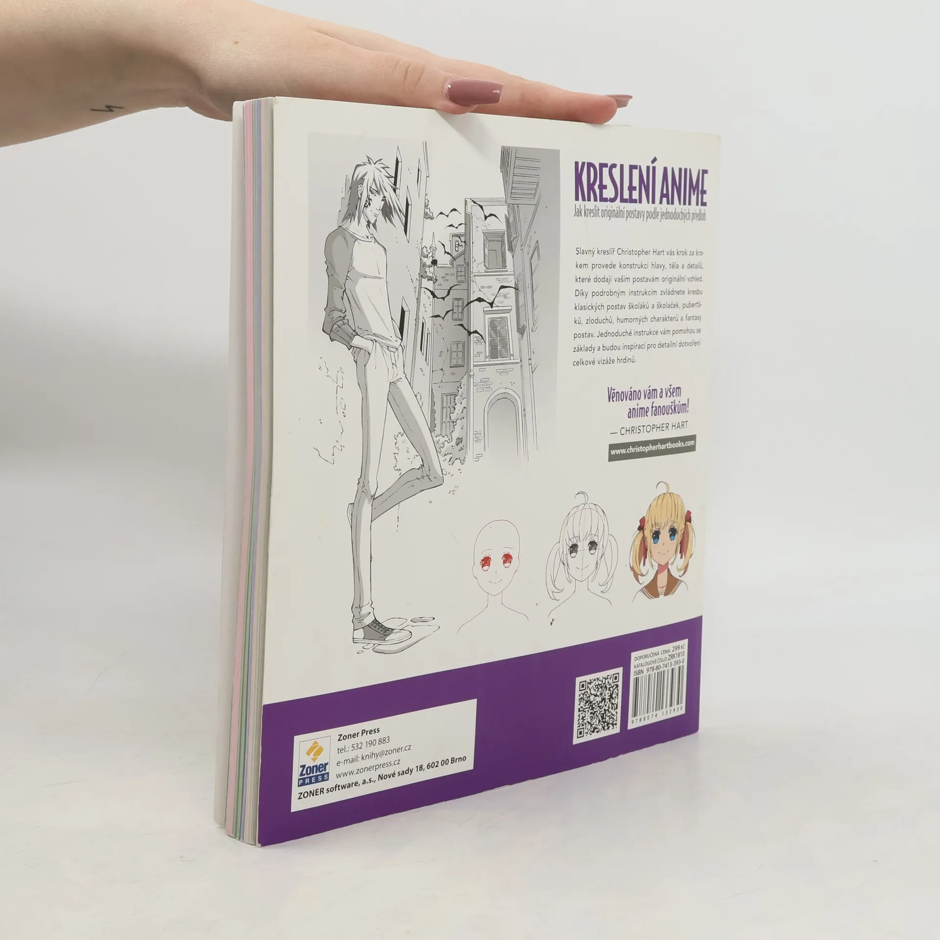 Jak kreslit originální postavy podle jednoduchých předloh. Nejlepší průvodce kreslením anime. Naučte se pomocí základních předloh a tvarů vytvořit bezpočet různých anime postav. Slavný kreslíř Christopher Hart vás krok za krokem provede konstrukcí hlavy, těla a detailů, které dodají vašim postavám originální vzhled. Díky podrobným instrukcím zvládnete kresbu klasických postav školáků a školaček, puberťáků, zloduchů, humorných charakterů a fantasy postav.