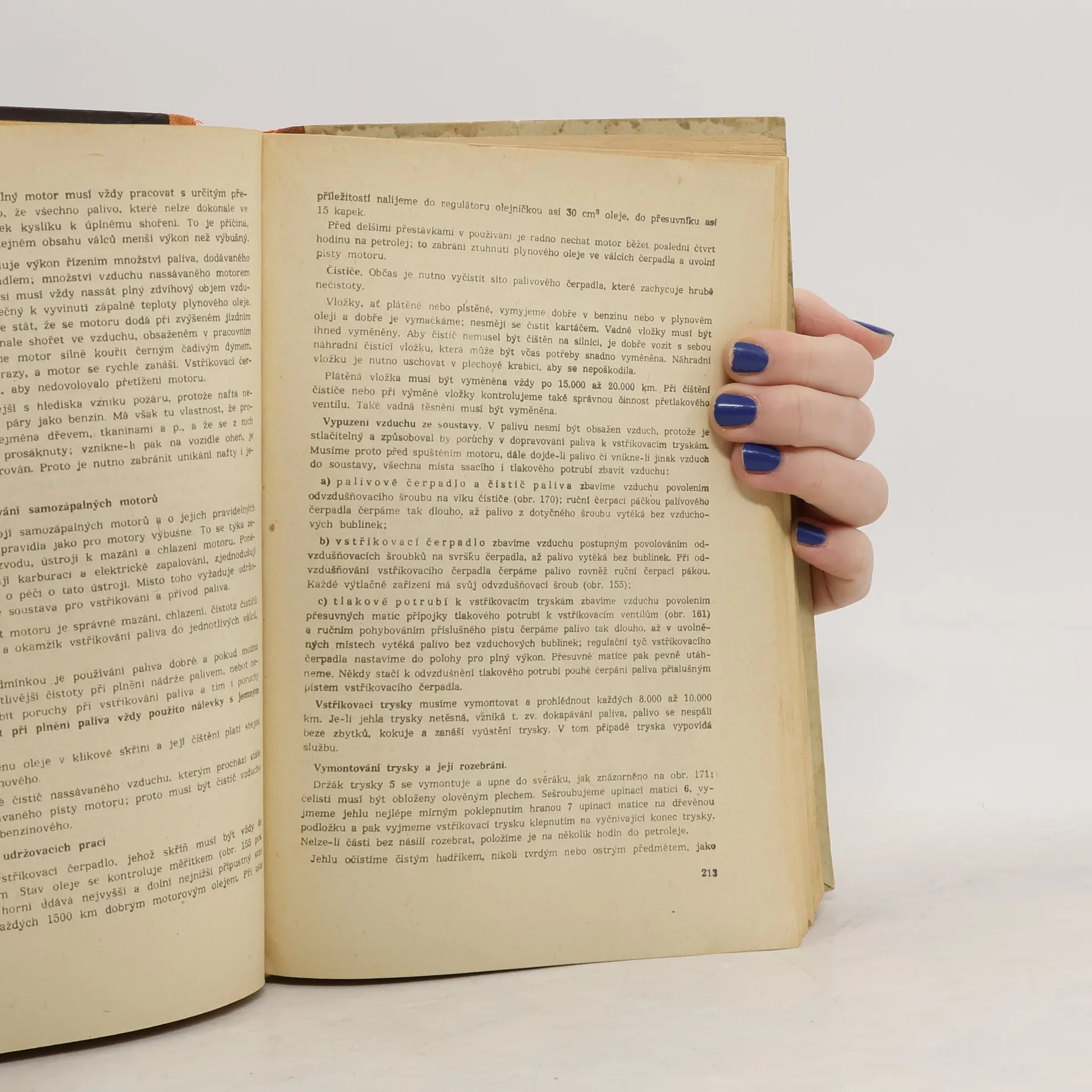 První část obsahuje technický popis motorového vozidla v nutném rozsahu s výběrem základních rysů konstrukčních, jež jsou společné všem typům. Druhá část přináší pokyny o soustavných prohlídkách a praktické návody, jak provádět úkony udržování a odstraňování poruch. Třetíčást pojednává o jízdě motorovými vozidly, zahrnuje pokyny k řízení za různých okolností jízdní dráhy a počasí a hlavní zákonná ustanovení. Zvláštní oddíl tvoří předpisy pro vojenské řidiče. Obsahuje mnoho údajů o vozidlech naší výroby a jejich příslušenstvích, mezi něž byly pojaty některé nové konstrukce, zejména karburátorů a vstřikovacích čerpadel, brzd i jiných ústrojí.