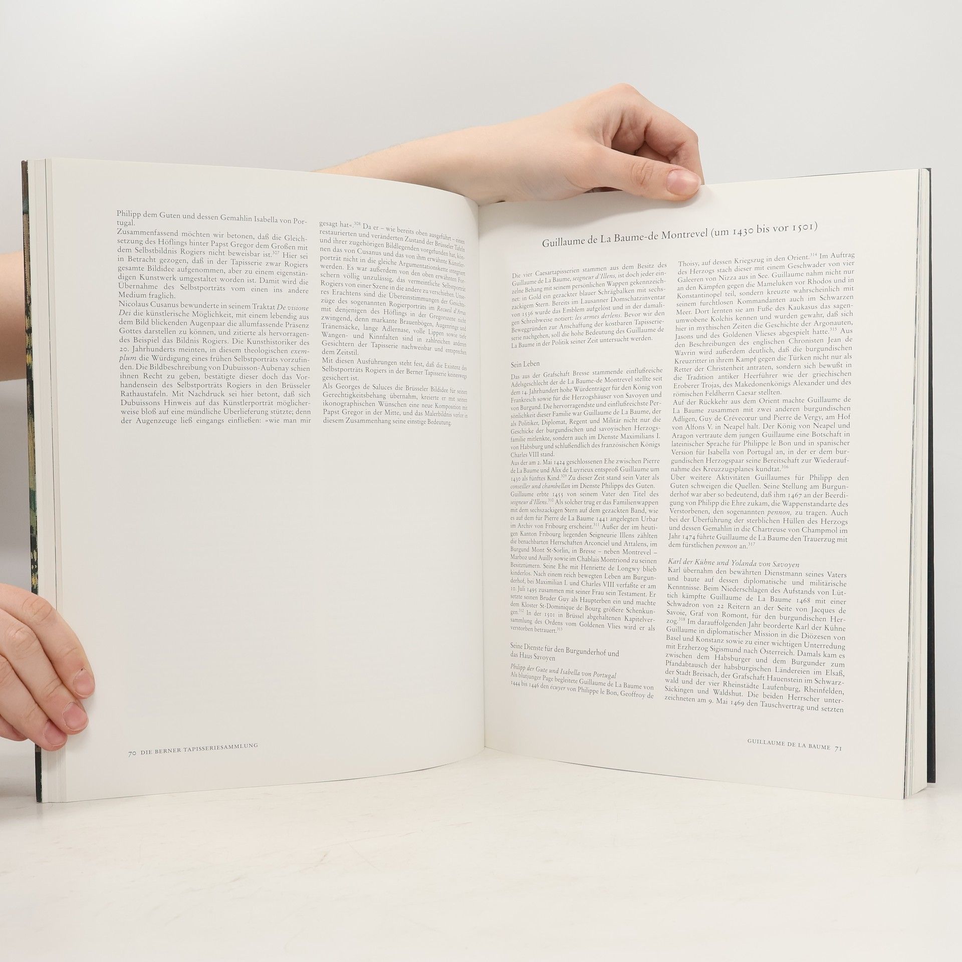 Ein Kunstbuch von außergewöhnlichem Format präsentiert den gesamten Bestand an burgundischen Tapisserien im Historischen Museum in Bern und vergleicht ihn mit ähnlichen Exemplaren aus Städten wie Brüssel, Glasgow, Krakau, London, Reims, Rom, Rouen und Wien. Im Spätmittelalter waren Tapisserien ein Zeichen des Standes der Fürsten. Im 15. Jahrhundert entstanden in den nordischen Ländern des Burgunderreiches bedeutende Produktionszentren, insbesondere in Arras, Tournai und Brüssel. Diese Kunstwerke wurden nicht nur zur Ausstattung von Residenzen verwendet, sondern auch als Hochzeitsgeschenke und diplomatische Präsente an Verwandte, politische Verbündete, den Klerus oder den Papst geschätzt. Die Untersuchung basiert auf dem gut erhaltenen Bestand des Historischen Museums in Bern und identifiziert beliebte religiöse und profane Themen, die in der höfischen Literatur behandelt werden. Anna Rapp Buri und Monica Stucky-Schürer haben 1990 die oberrheinischen Tapisserien des 15. Jahrhunderts wissenschaftlich bearbeitet und präsentieren nun eine analoge Publikation über die burgundischen Tapisserien. Detaillierte Bildbeschreibungen, Kompositionsanalysen, literarische Quellen, ikonographische Bestimmungen sowie Datierungen und Informationen zu Auftraggebern und Bestimmungsorten machen dieses Werk zu einem kulturgeschichtlichen Kompendium, das die geistigen, religiösen, historischen, gesellschaftlichen und künstlerischen Strömungen der Epo