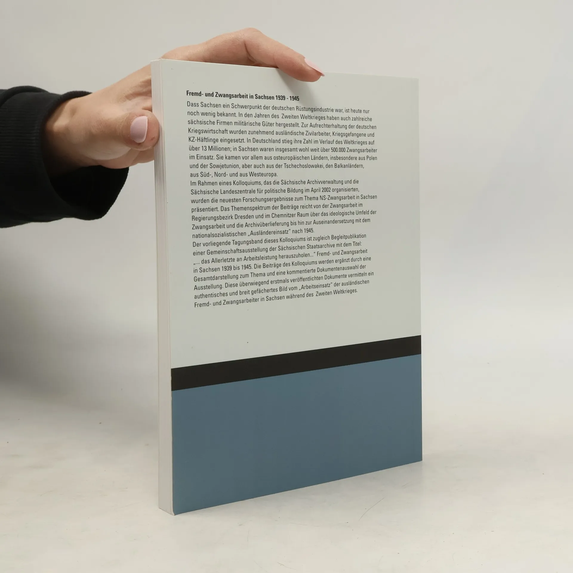 Sachsen war ein bedeutendes Zentrum der deutschen Rüstungsindustrie, was heute oft wenig bekannt ist. Während des Zweiten Weltkriegs produzierten zahlreiche sächsische Firmen militärische Güter. Um die Kriegswirtschaft aufrechtzuerhalten, wurden zunehmend ausländische Zivilarbeiter, Kriegsgefangene und KZ-Häftlinge eingesetzt. Ihre Zahl stieg in Deutschland auf über 13 Millionen, wobei in Sachsen über 500.000 Zwangsarbeiter tätig waren. Diese stammten vor allem aus osteuropäischen Ländern wie Polen und der Sowjetunion, aber auch aus der Tschechoslowakei und anderen Regionen Europas. Im April 2002 präsentierten die Sächsische Archivverwaltung und die Sächsische Landeszentrale für politische Bildung in einem Kolloquium die neuesten Forschungsergebnisse zur NS-Zwangsarbeit in Sachsen. Die Themen reichten von der Zwangsarbeit im Regierungsbezirk Dresden und Chemnitz über das ideologische Umfeld bis hin zur Auseinandersetzung mit dem nationalsozialistischen „Ausländereinsatz“ nach 1945. Der Tagungsband dient als Begleitpublikation einer Gemeinschaftsausstellung der Sächsischen Staatsarchive mit dem Titel „. das Allerletzte an Arbeitsleistung herauszuholen.“ Die Beiträge werden durch eine umfassende Darstellung und eine kommentierte Dokumentenauswahl ergänzt, die ein authentisches Bild vom Einsatz der ausländischen Zwangsarbeiter in Sachsen während des Krieges vermittelt.