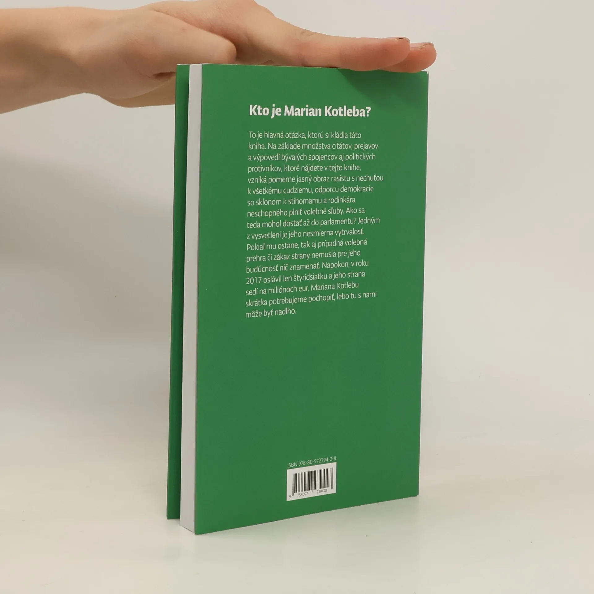 Kto je Marian Kotleba? To je hlavná otázka, ktorú si kládla táto kniha. Na základe množstva citátov, prejavov a výpovedí bývalých spojencov aj politických protivníkov, ktoré nájdete v tejto knihe, vzniká pomerne jasný obraz rasistu s nechuťou k všetkému cudziemu, odporcu demokracie so sklonom k stihomanu a rodinkára neschopného plniť volebné sľuby. Ako sa teda mohol dostať až do parlamentu? Jedným z vysvetlení je jeho nesmierna vytrvalosť. Pokiaľ mu ostane, tak aj prípadná volebná prehra či zákaz strany nemusia pre jeho budúcnosť nič znamenať. Napokon, v roku 2017 oslávil len štyridsiatku a jeho strana sedí na miliónoch eur. Mariana Kotlebu skrátka potrebujeme pochopiť, lebo tu s nami môže byť nadlho.