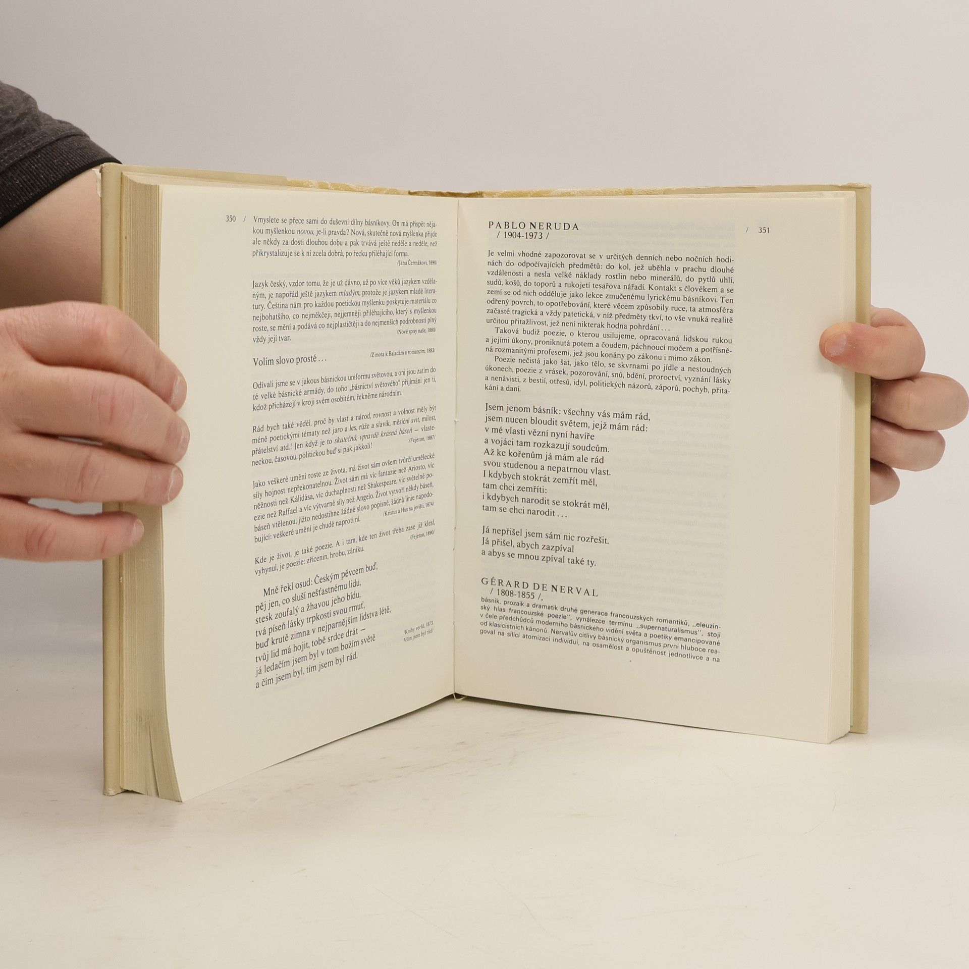 Sborník shromažďuje texty povahy uměnovědné, estetické, literárněkritické i úvahy o poezii. Slovníkové uspořádání knihy má usnadnit hledání jména autora, chronologická tabulka na konci zařazuje autora do časových souvislostí. Editor se snažil uplatnit ve výkladu a výběru textů i hledisko vývojové, chce ukázat autora od jeho raných názorů po pozdější, zralé období jeho myšlení. Ve svazku mají převahu texty básníků, ale zařazeno je i několik filosofů či kritiků, jejichž dílo mělo velký vliv na vývoj básnictví.