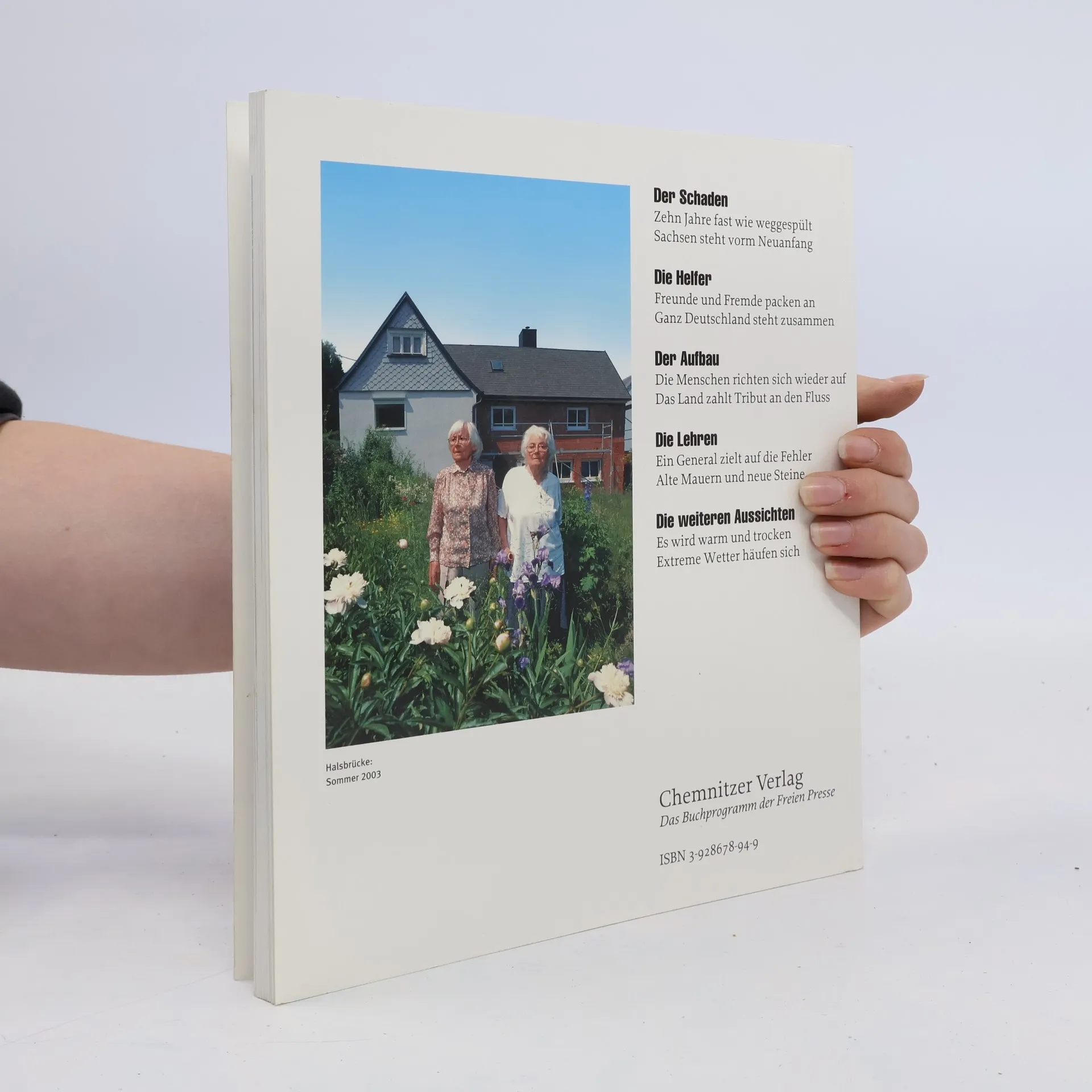 Der 12. August 2002 - der Tag an dem die Flut kam und Sachsen unter Wasser setzte. Die Hochwasserkatastrophe des vergangenen Jahres hat vieles verändert: Sie hat getötet und zerstört, Existenzen bedroht, Leid und Schäden verursacht, die sich nicht allein in Geld messen lassen. Aber der Flutwelle folgte auch eine in diesem Ausmaß nicht erwartete Welle der Solidarität. In dem Buch „Nach der Flut“ stehen die Solidarität der Menschen, die spontane Bereitschaft, finanziell und materiell, aber auch ganz persönlich mit Eimer und Schaufel zu helfen, und der Wiederaufbau in Sachsen im Mittelpunkt. In fünf Kapiteln versuchen die Autoren, eine Bestandsaufnahme ein Jahr nach dem Hochwasser. Neben einem Rückblick auf die Schäden enthält das 128 Seiten starke Buch eine Würdigung der Helfer, eine Dokumentation des Wiederaufbaus, eine Zusammenfassung der Lehren aus der Katastrophe und einen vorsichtigen Blick in die Zukunft.
