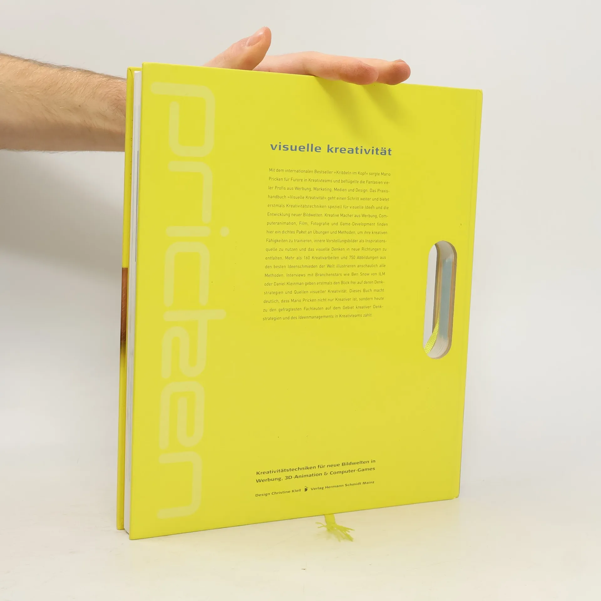 Wie entwickelt man vollkommen neue Ideen? Wie bearbeitet man solche Bilder im Kopf und wie bekommt man sie auf den Mac? Wie wird man zum Regisseur des Kinos im Kopf? Und was können wir von Tagträumern lernen? Mit Kribbeln im Kopf entwickelte Mario Pricken das vermutlich erfolgreichste Kreativtraining Europas. Indem er Fragen stellte. Fragen, die weiterhelfen. Für Visuelle Kreativität fragte er weiter und tiefer. Er lotet den Grenzbereich aus zwischen Wahrnehmung und Imagination, zwischen Sehen und Fantasie, zwischen Bewusstsein und Trance. Weltweit spricht er mit Top-Kreativen, die neue Bildwelten schaffen. Er analysiert ihre Kreativstrategien und führt Sie Schritt für Schritt in den Spuren der Stars in Ihr eigenes 'Filmstudio im Kopf'. Begleitet von internationalen Spitzenbeispielen und mit Praxis- und Übungstipps. Schaffen Sie neue Bildwelten. Damit wir Sie bald sehen. In Cannes, bei der ADC-Preisverleihung. Und wo immer Spitzen-Kreativität Applaus bekommt.