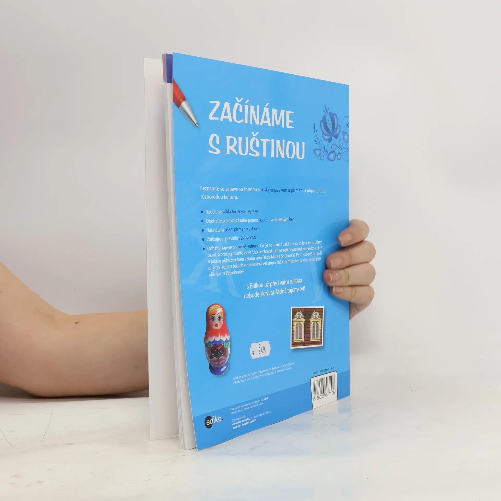 Příručka nabízí základní seznámení s ruštinou i ruskými reáliemi. Ve dvaceti lekcích se čtenář seznamuje prostřednictvím krátkých českých textů se zajímavými fakty o Rusku, jeho kultuře a společnosti. Text doplňuje slovníček důležitých pojmů, užitečné výrazy, hravé úlohy k procvičení látky. V závěru klíč ke cvičením a česko-ruský slovníček.