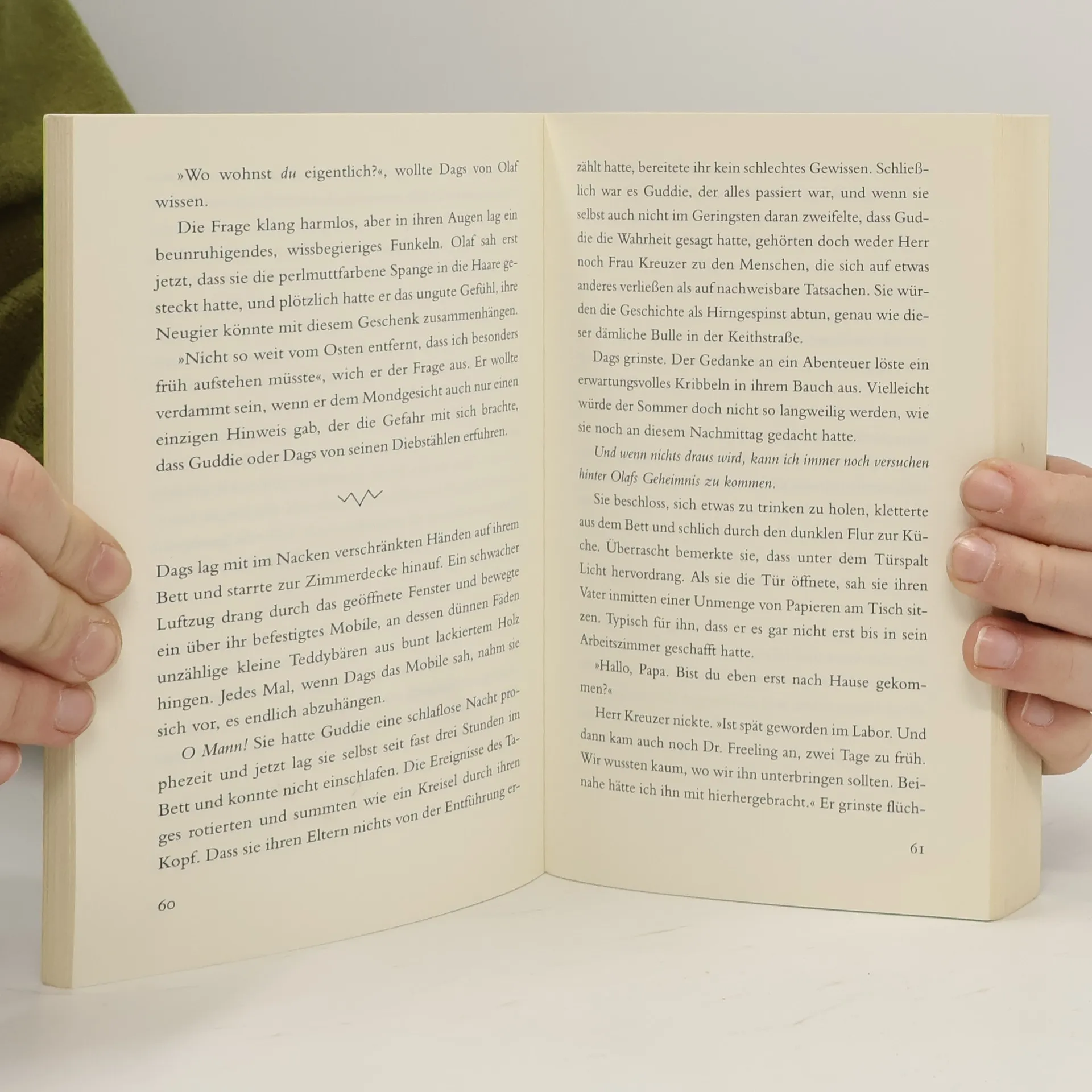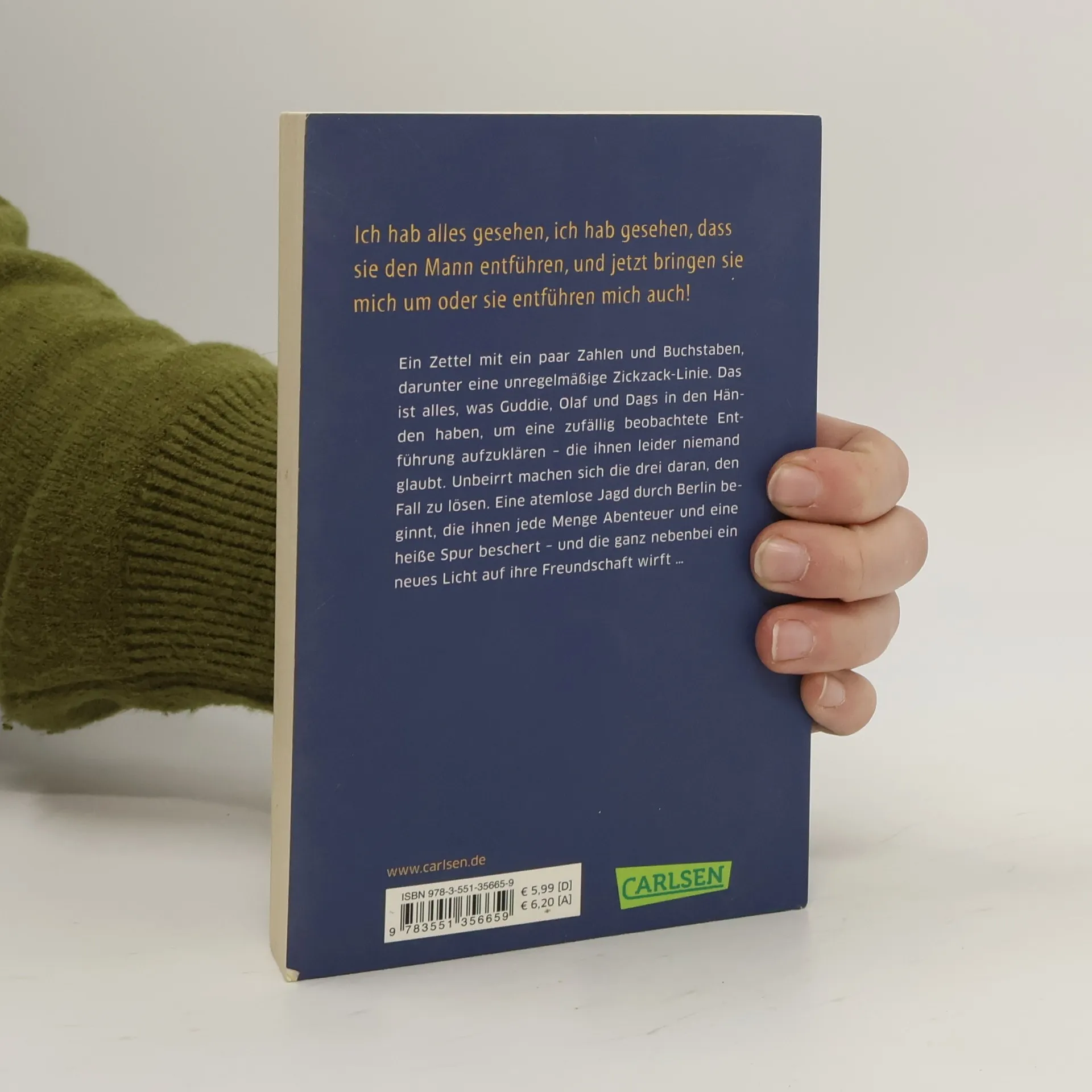 Ein Zettel mit ein paar Zahlen und Buchstaben, darunter eine unregelmäßige Zickzack-Linie. Das ist alles, was Guddie, Olaf und Dags in den Händen haben, um eine zufällig beobachtete Entführung aufzuklären – die ihnen leider niemand glaubt. Unbeirrt machen sich die drei daran, den Fall zu lösen. Eine atemlose Jagd durch Berlin beginnt, die ihnen jede Menge Abenteuer und eine heiße Spur beschert – und die ganz nebenbei ein neues Licht auf ihre Freundschaft wirft …