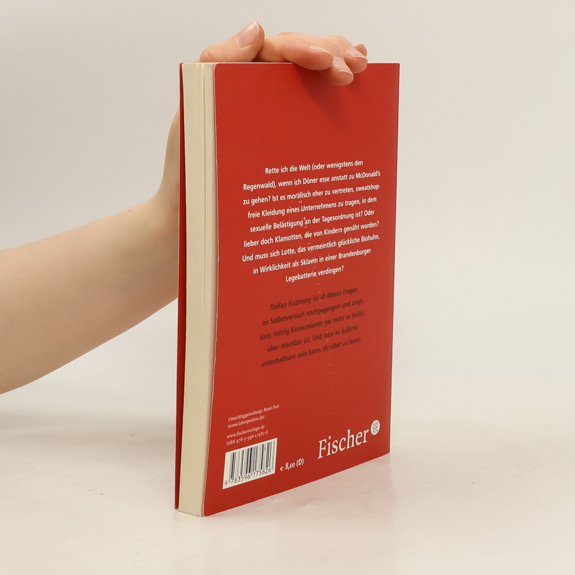 Rette ich die Welt (oder wenigstens den Regenwald), wenn ich Döner esse anstatt zu McDonald’s zu gehen? Ist es moralisch eher zu vertreten, sweatshop-freie Kleidung eines Unternehmens zu tragen, in dem sexuelle Belästigung an der Tagesordnung ist? Oder lieber doch Klamotten, die von Kindern genäht wurden? Und muss sich Lotte, das vermeintlich glückliche Biohuhn, in Wirklichkeit als Sklavin in einer Brandenburger Legebatterie verdingen? Stefan Kuzmany ist all diesen Fragen im Selbstversuch nachgegangen und zeigt, dass richtig Konsumieren gar nicht so leicht, aber machbar ist. Und dass es äußerst unterhaltsam sein kann, darüber zu lesen.