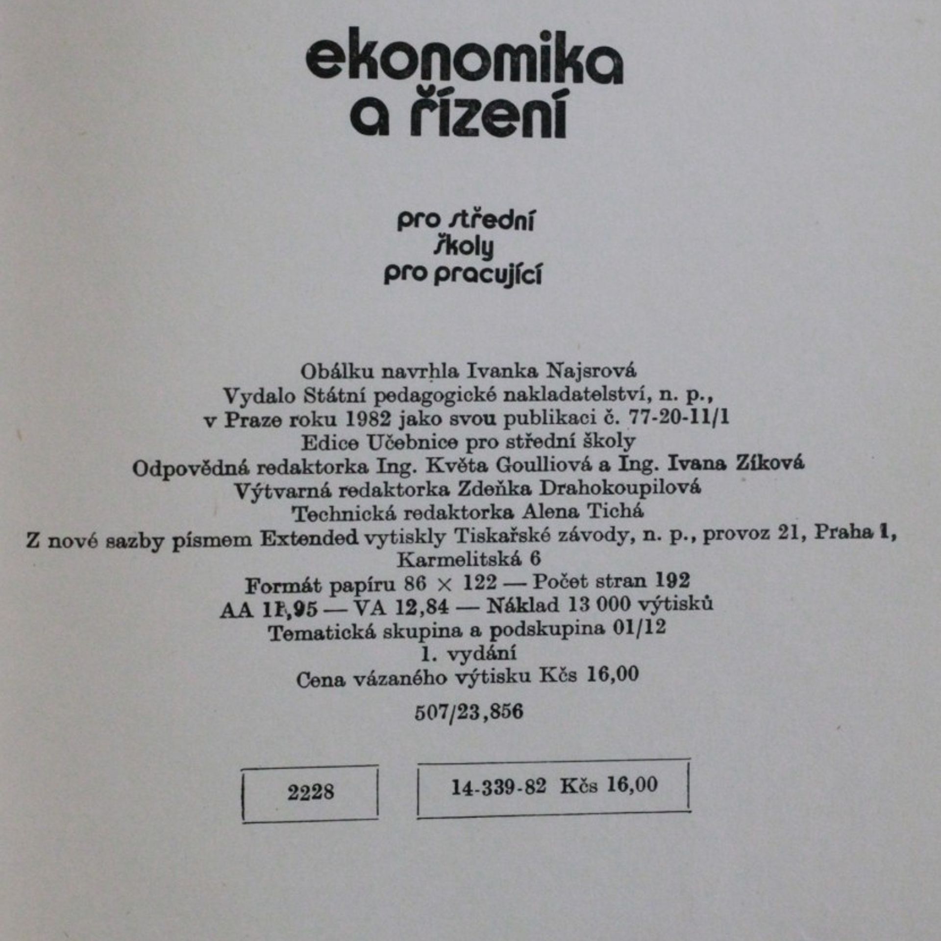 Ekonomika a řízení pro střední školy pro pracující, Jaromír Barvík, Antonín Chyba