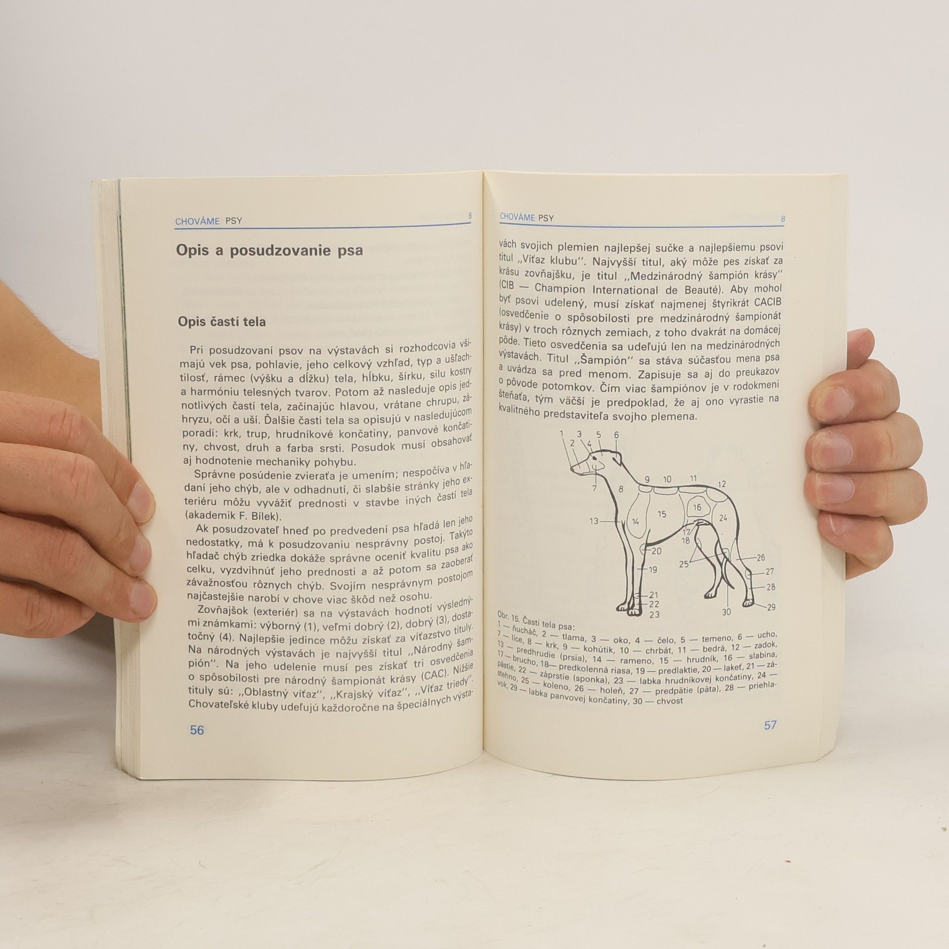 Kapitoly: Človek a pes, Rady začínajúcim chovateľom, Plemená psov, Opis a posudzovanie psa, Mechanika pohybu, Plemenitba, Rozmnožovanie psov, Výživa kŕmenie, Najčastejšie choroby psov a veterinárne a zootechnické opatrenia v ich chove, Psy v službách človeka a ich špeciálny výcvik, Prvá pomocpri poranení človeka psom. Tretie vydanie.