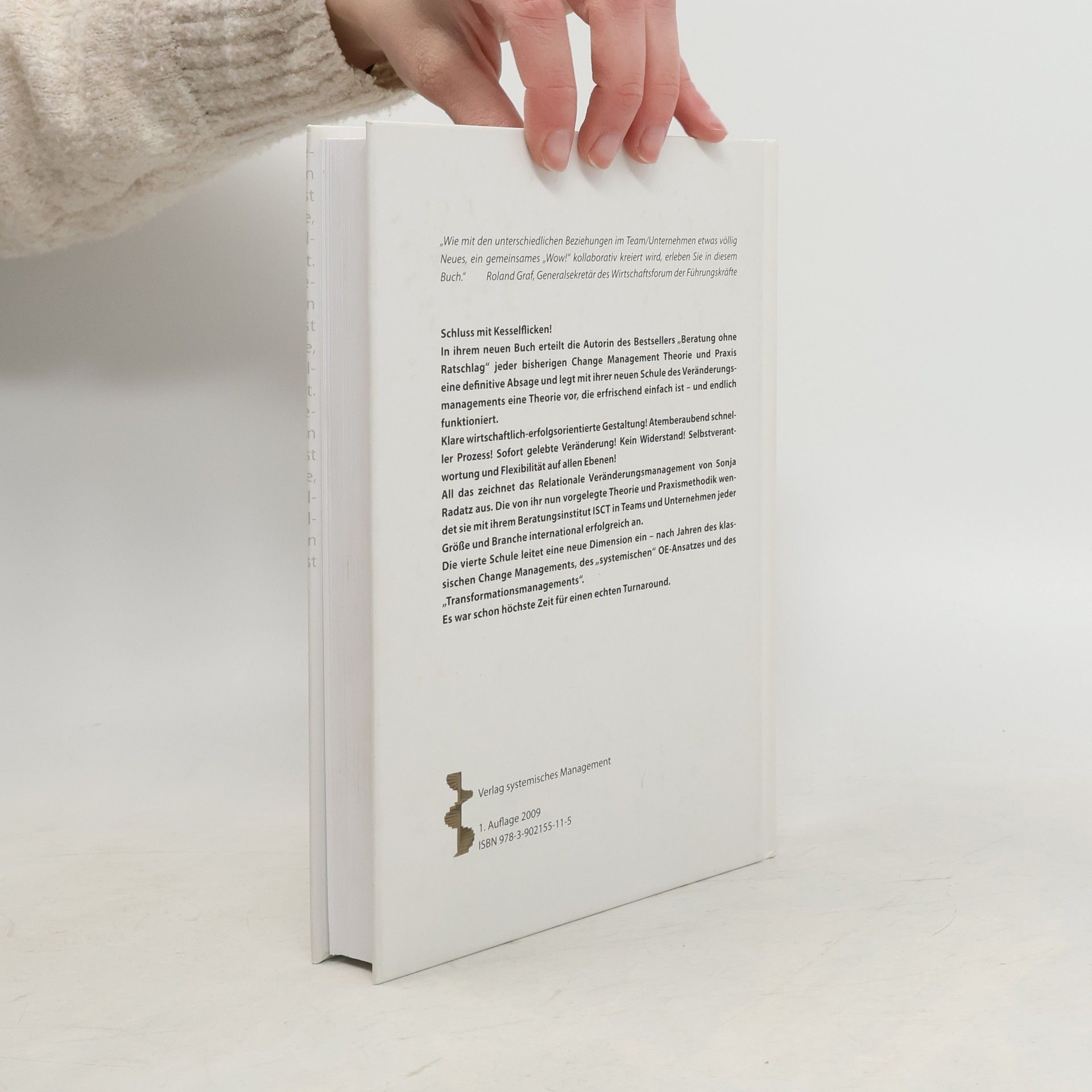 Schluss mit Kesselflicken! In ihrem neuen Buch erteilt die Autorin des Bestsellers „Beratung ohne Ratschlag“ jeder bisherigen Change Management Theorie und Praxis eine definitive Absage und legt mit ihrer neuen Schule des Veränderungsmanagements eine Theorie vor, die erfrischend einfach ist – und endlich funktioniert. Klare wirtschaftlich-erfolgsorientierte Gestaltung! Atemberaubend schneller Prozess! Sofort gelebte Veränderung! Kein Widerstand! Selbstverantwortung und Flexibilität auf allen Ebenen! All das zeichnet das Relationale Veränderungsmanagement von Sonja Radatz aus. Die von ihr nun vorgelegte Theorie und Praxismethodik wendet sie mit ihrem Beratungsinstitut ISCT in Teams und Unternehmen jeder Größe und Branche international erfolgreich an. Die vierte Schule leitet eine neue Dimension ein – nach Jahren des klassischen Change Managements, des "systemischen“ OE-Ansatzes und des „Transformationsmanagements“. Es war schon höchste Zeit für einen echten Turnaround.