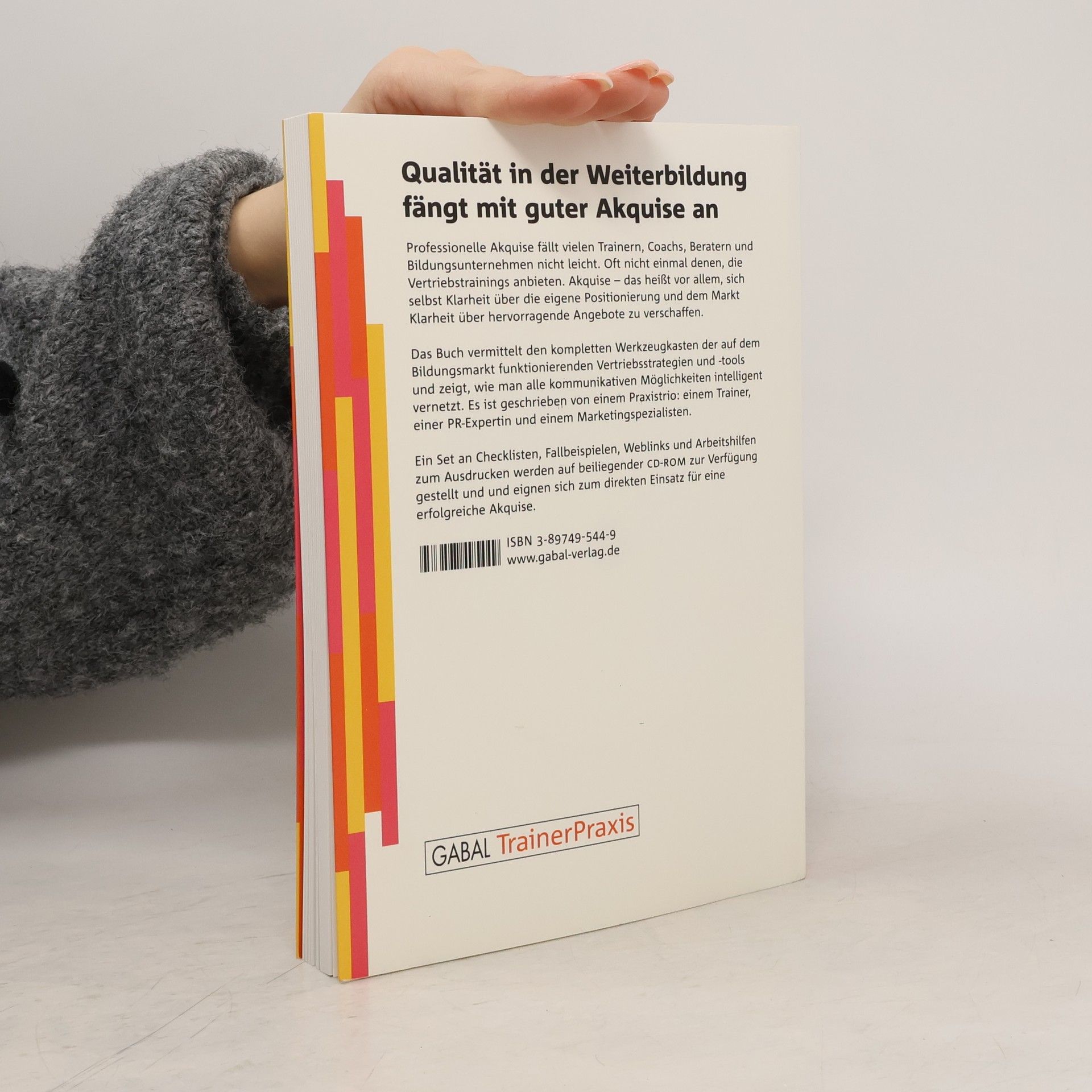 Professionelle Akquise fällt vielen Trainern, Coaches, Beratern und Bildungsunternehmern nicht leicht. Oft nicht einmal denen, die Vertriebsschulungen anbieten. Akquise - das heisst vor allem, sich selbst Klarheit über die eigene Positionierung und dem Markt Klarheit über hervorragende Angebote zu verschaffen. Das Buch vermittelt den kompletten Werkzeugkasten der auf dem Bildungsmarkt funktionierender Vertriebsstrategien und -tools zeigt, wie man alle kommunikativen Möglichkeiten intelligent vernetzt. Es ist geschrieben von einem Praxistrio: einem Trainer, einer PR-Expertin und einem Marketingspezialisten.