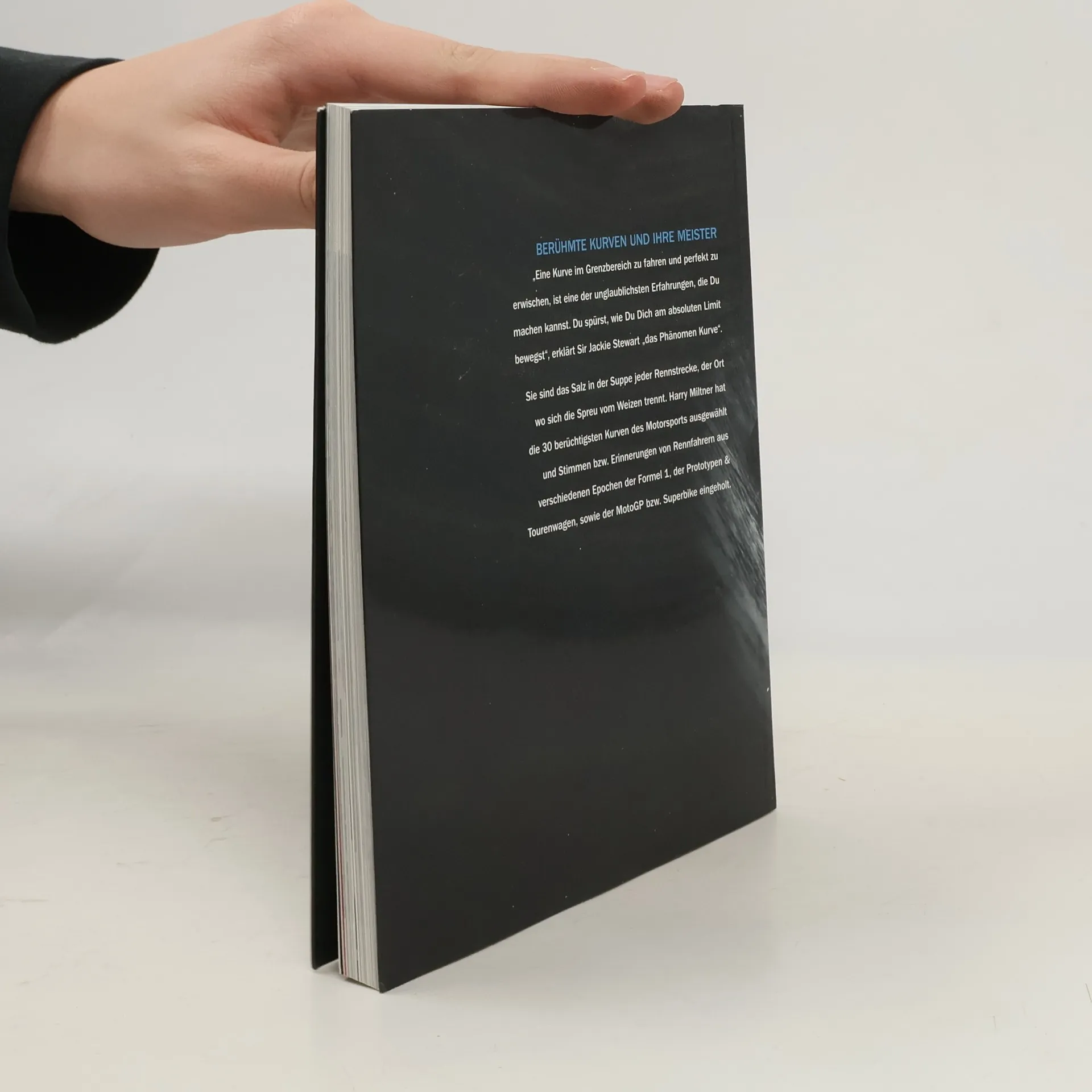 „Eine Kurve im Grenzbereich zu fahren und perfekt zu erwischen, ist eine der unglaublichsten Erfahrungen, die Du machen kannst. Du spürst, wie Du Dich am absoluten Limit bewegst“, erklärt Sir Jackie Stewart „das Phänomen Kurve“. Sie sind das Salz in der Suppe jeder Rennstrecke, der Ort wo sich die Spreu vom Weizen trennt. Harry Miltner hat die 30 berüchtigsten Kurven des Motorsports ausgewählt und Stimmen und Erinnerungen von Rennfahrern aus verschiedenen Epochen der Formel 1, den Prototypen & Tourenwagen, sowie der MotoGP bzw. Superbike eingeholt.