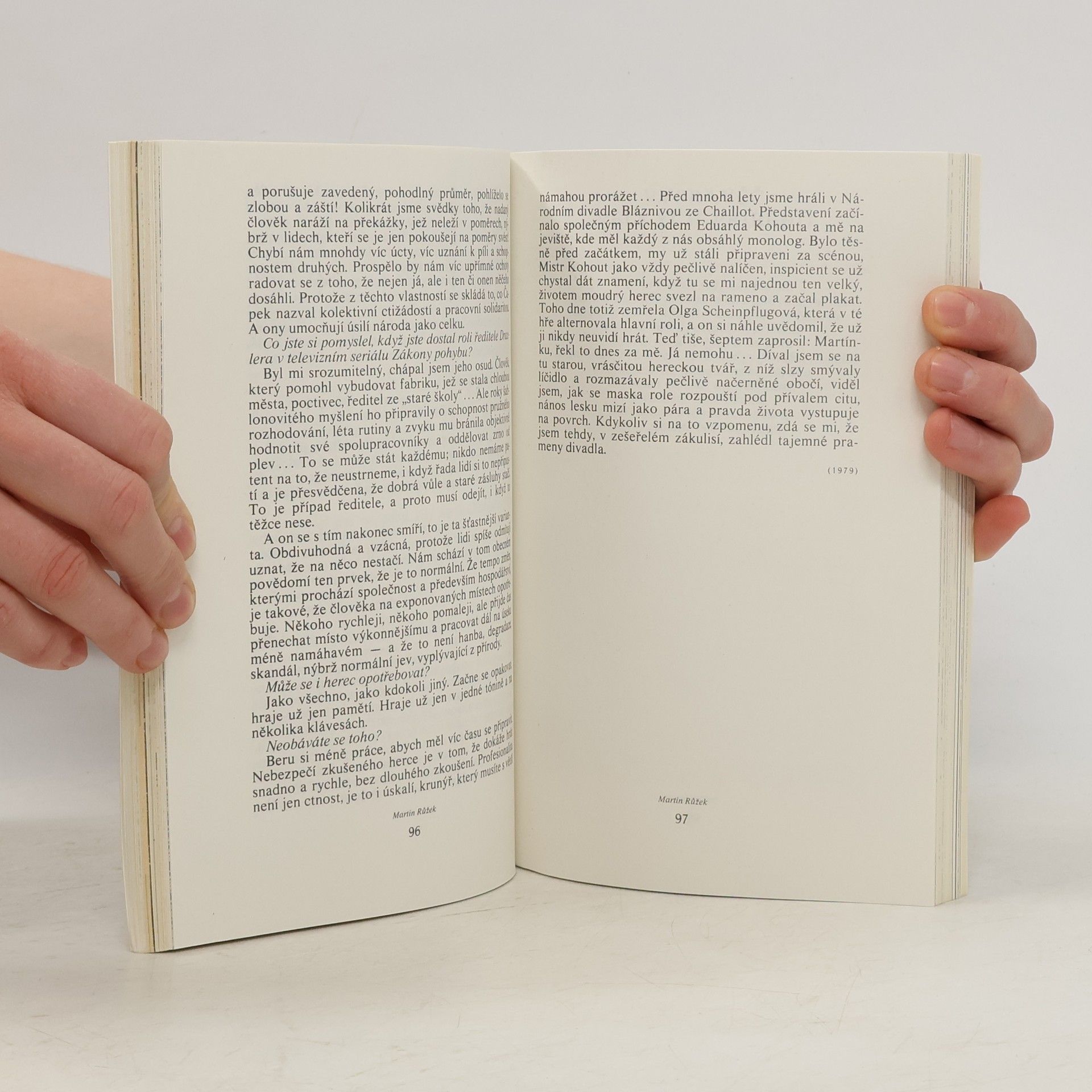 Rozhovory s lidmi, kteří mi pomohli pochopit, že jedině ten, kdo dokáže mnoho obětovat, může ještě víc získat. - Jiří Janoušek Objekty rozhovorů: Iva Janžurová Jan Bauch Vladimír Neff Jean Claude Brialy Miroslav Boublík Chris Evertová-Lloydová Martin Růžek Jaroslav Dietl Bohuslav Slánský Jana Hlaváčová Josef Suk Sergej Bondarčuk Ladislav Pešek Josef Svoboda Valentin Petrovič Katajev Barbra Streisandová Otakar Pferfecký Luděk Munzar